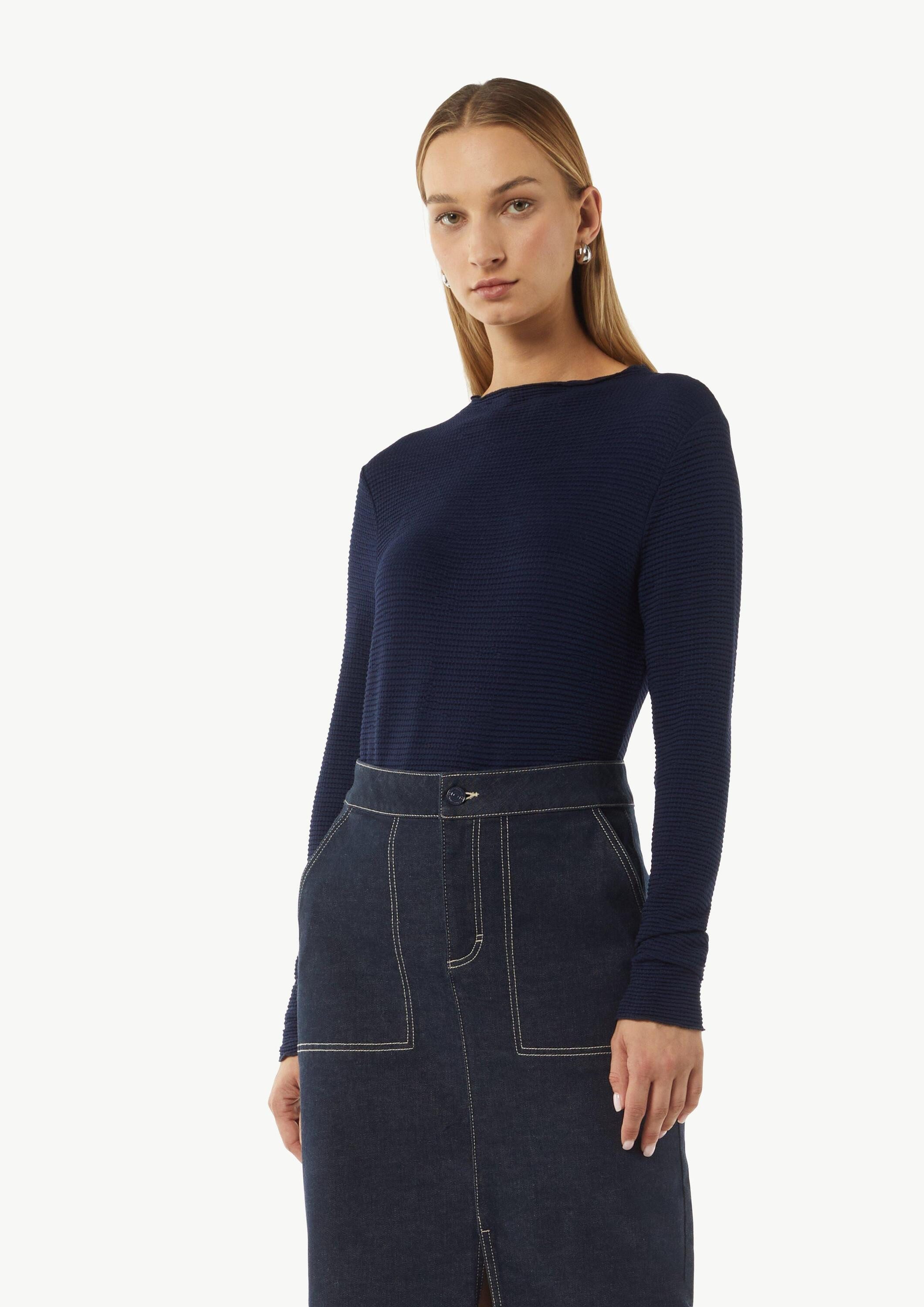 Schnittform Длина | Strukturiertes Jerseyshirt mit Stehkragen |