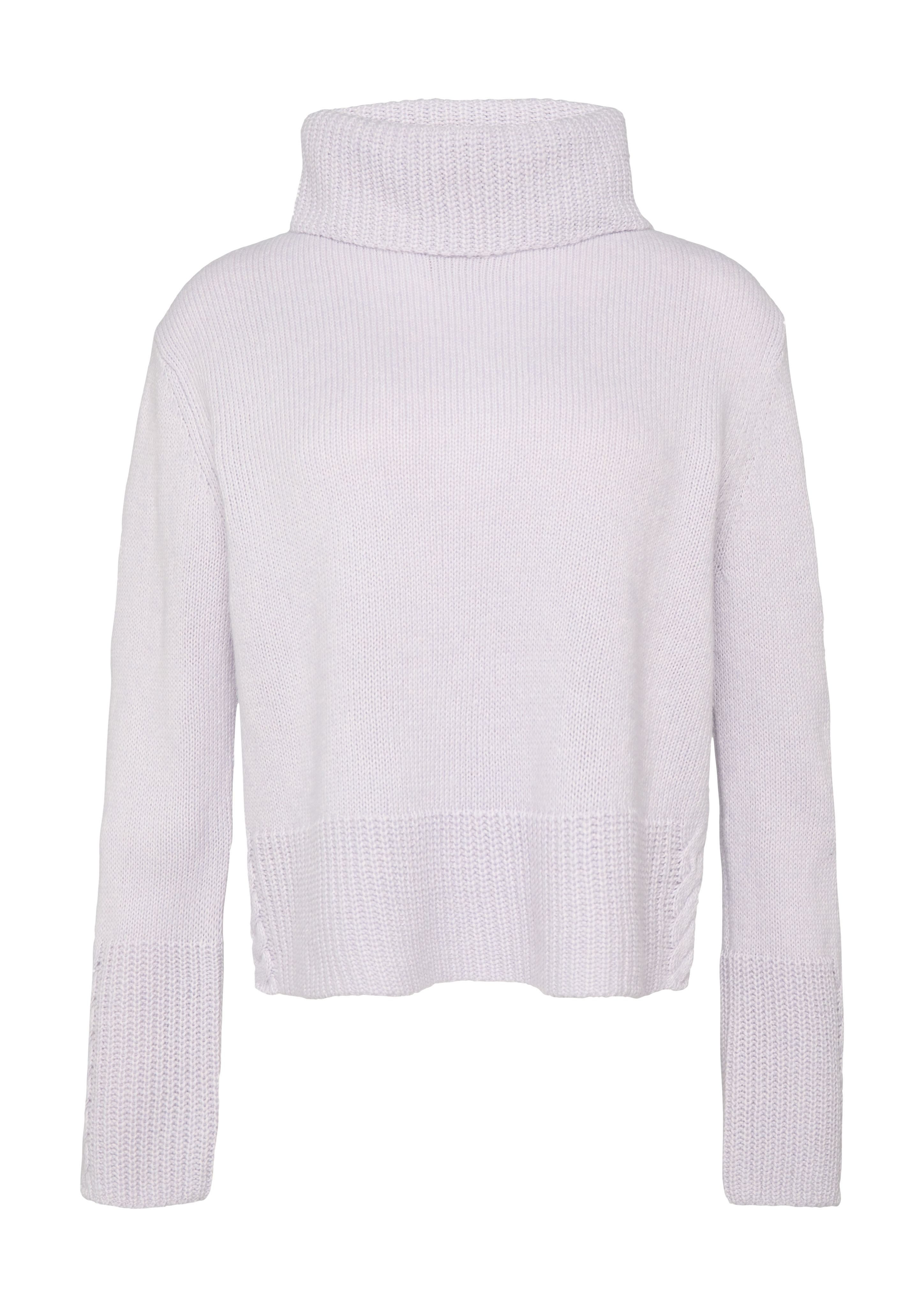 Der Strickstoff aus Baumwollmischung wärmt und ist angenehm zu tragen. Lege den Pullover zum Trocknen an der Luft auf den Wäscheständer, statt ihn aufzuhängen. So behält er seine Form und verzieht sich nicht.