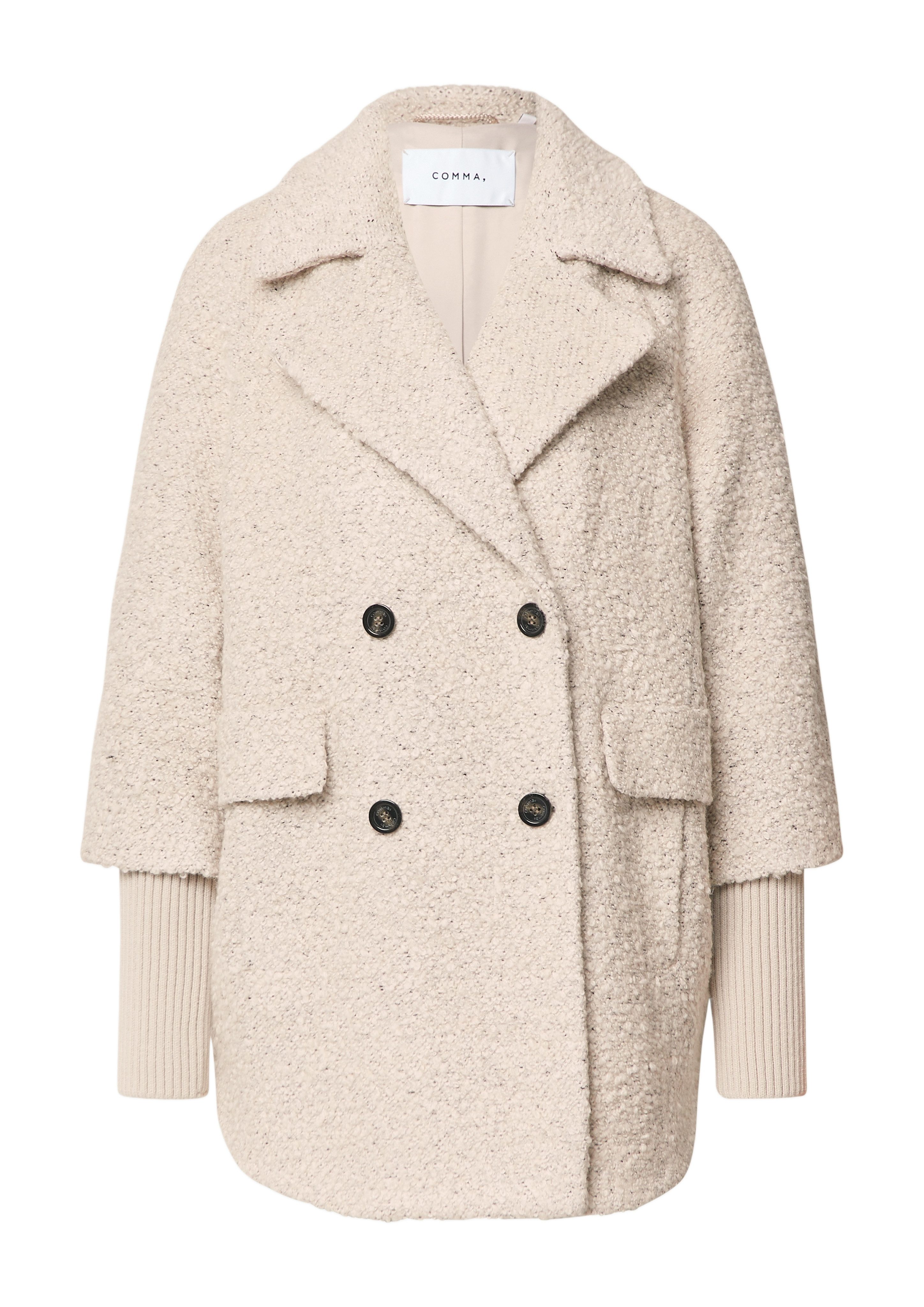 Materialzusammensetzung | Außenmaterial: 79 % Polyacryl, 16 % Wolle, 5 % Polyester; Futter: 100 % Polyester; 56 % Viskose, 44 % Polyester; 100 % Polyacryl |