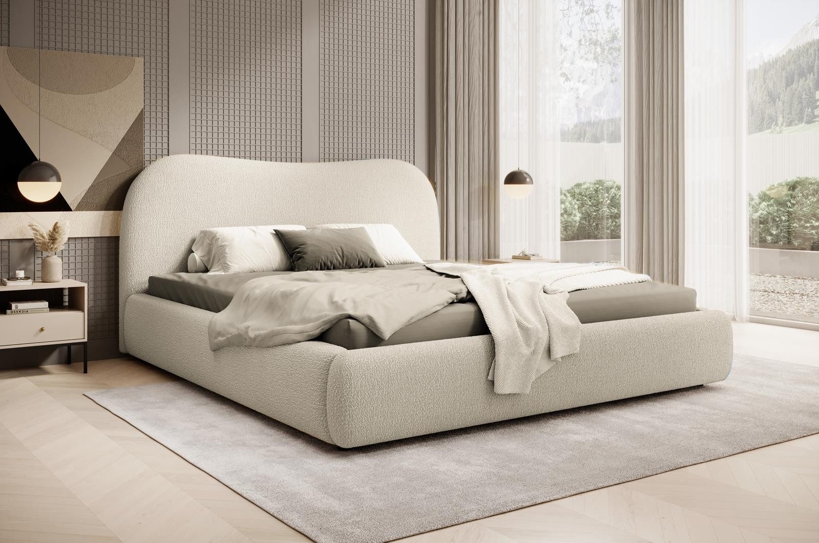 Abriamo iist ein eleganter Bouclé-Stoff, der sich durch seine dreidimensionale Struktur auszeichnet. Seine Schwerentflammbarkeit und Lichtbeständigkeit machen ihn zu einer funktionalen Lösung sowohl für öffentliche als auch für private Räume.).