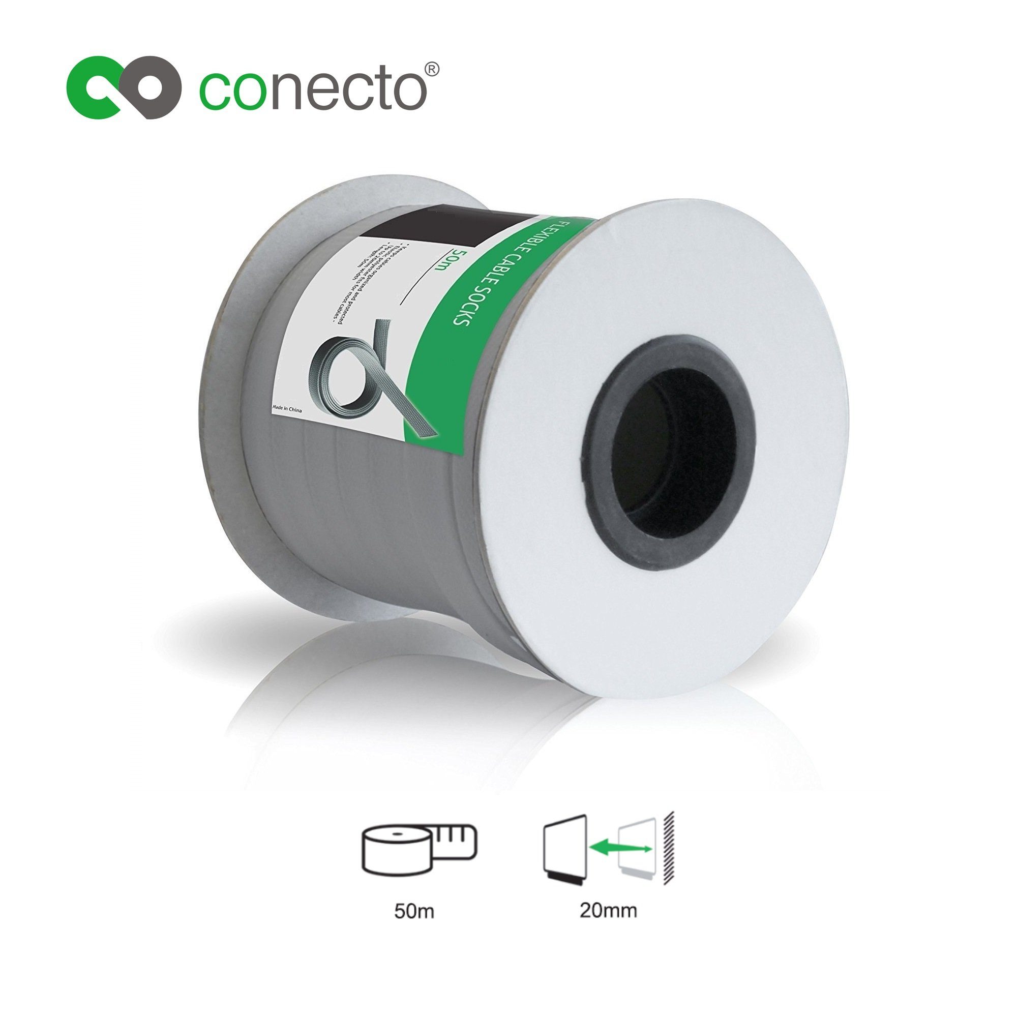 • Lieferumfang: conecto CC50316 Universeller Polyester-Kabelschlauch, Ø 20mm, Rolle 50m, grau