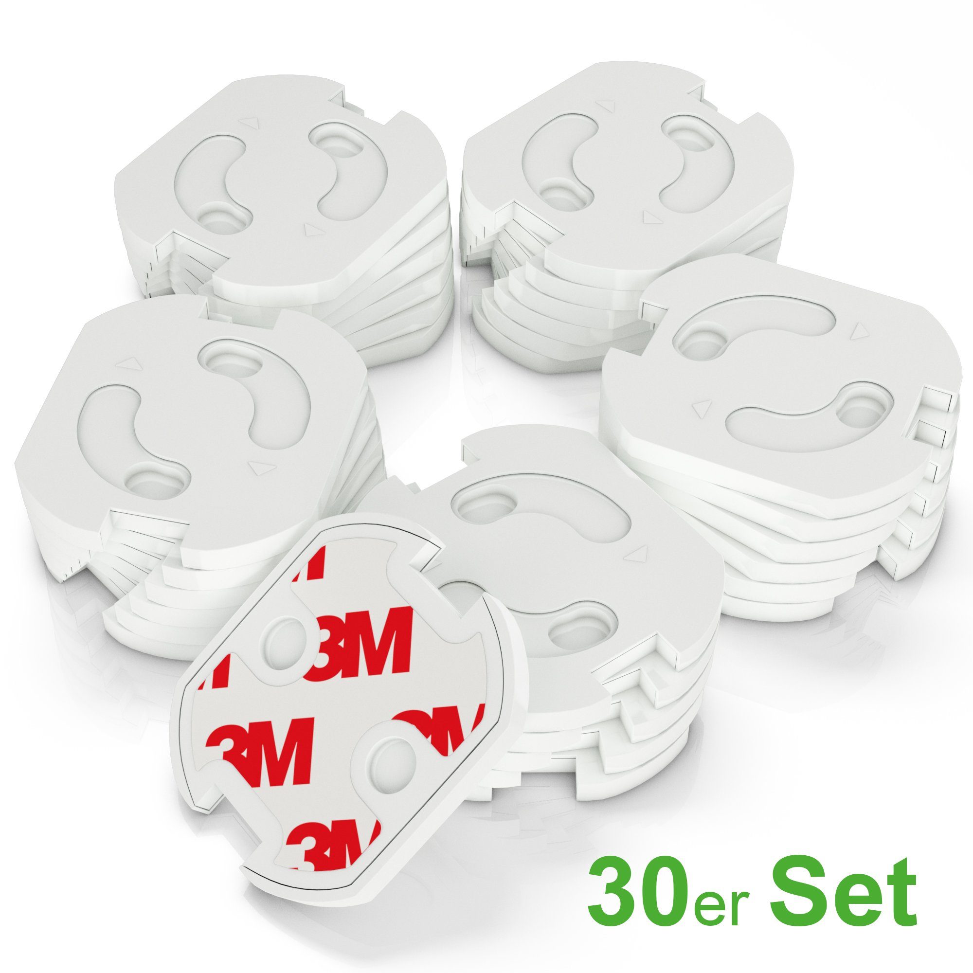 30 Stk. conecto Steckdosenschutz Kindersicherung für Steckdose mit Dreh-Mechanik und vollflächigem 3M Klebeband, weiß