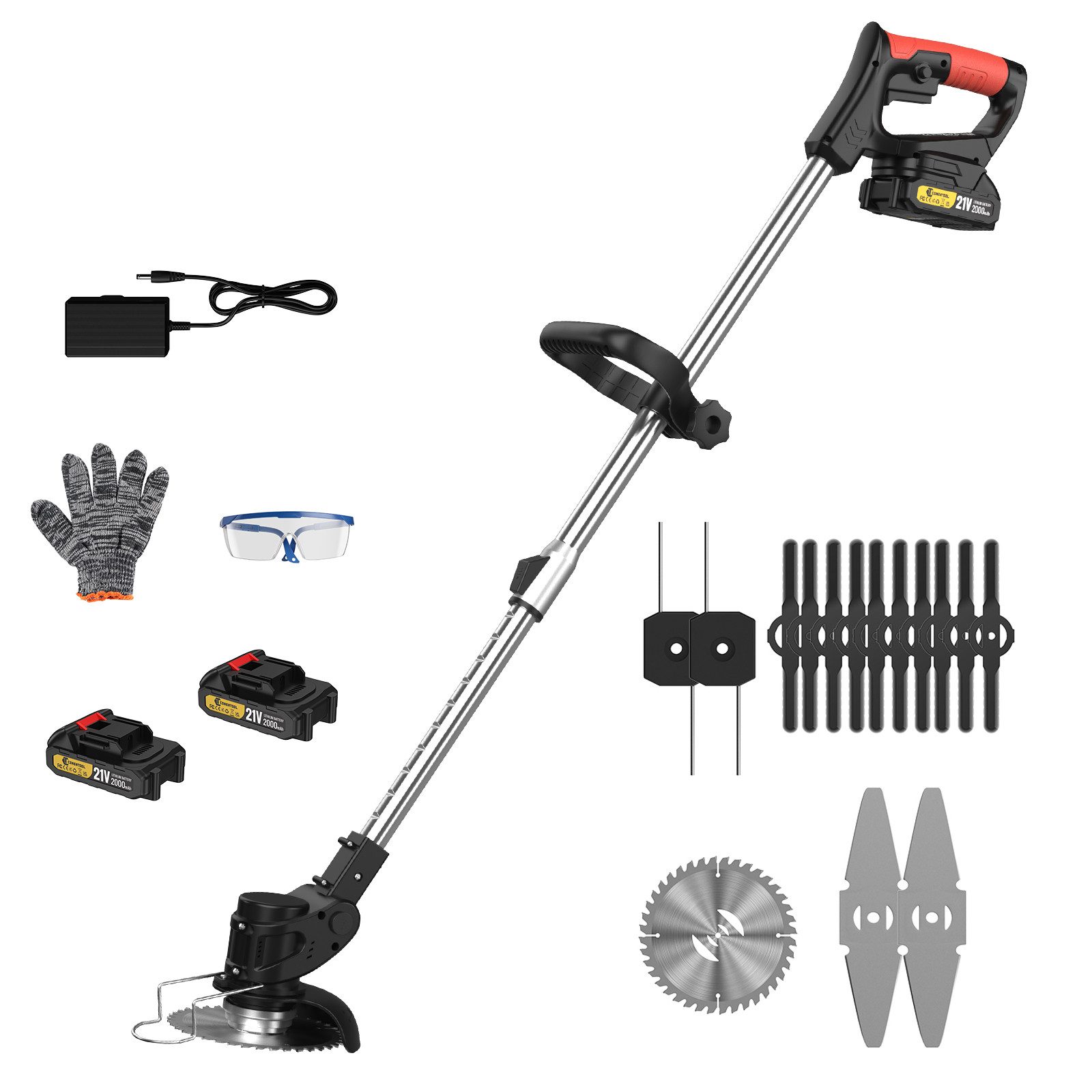 Lieferumfang | 1x Akku Rasentrimmer 1x Ladegerät 2x Akkus (21V/2.0 Ah) 1x Kreissägeblatt 2x Metallklinge 10x PVC-Klingen 2x Stahldraht-Trimmer |