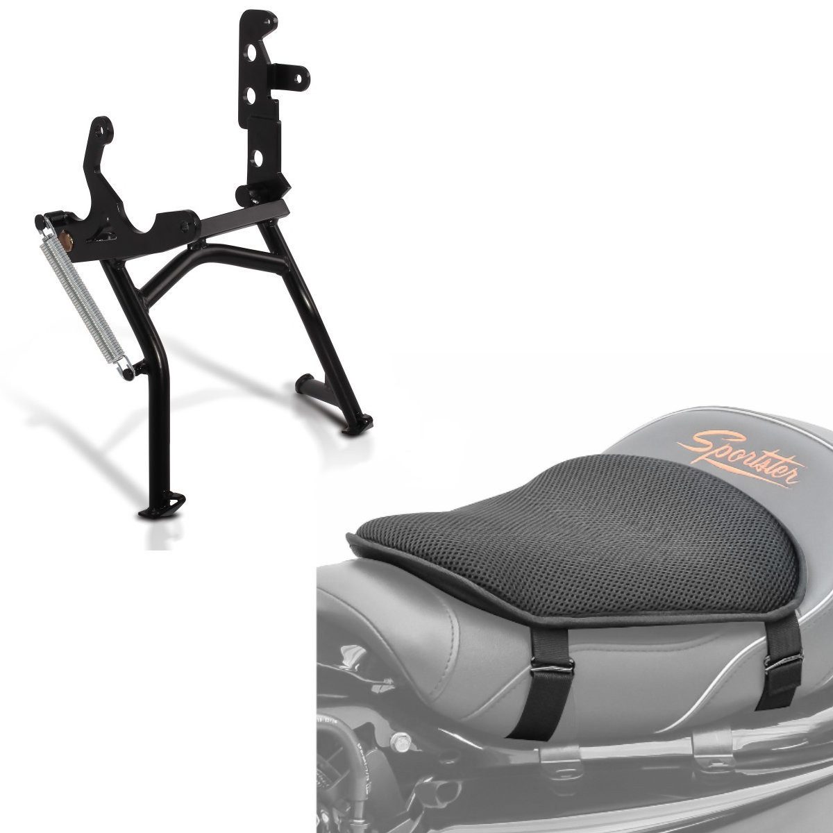 Lieferumfang: Hauptständer Kawasaki KLE 500 90-07 Mittelständer in schwarz + Gel Sitzkissen M Tourtecs Universal Komfortkissen schwarz