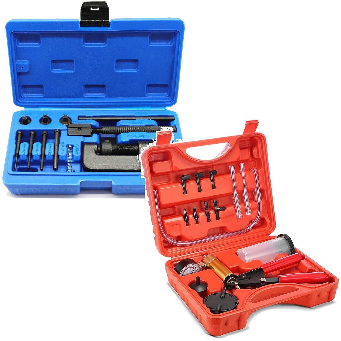 Motorradheber Set: Kettentrenner und Vernietwerkzeug + Bremsenentlüftungsgerät VM2