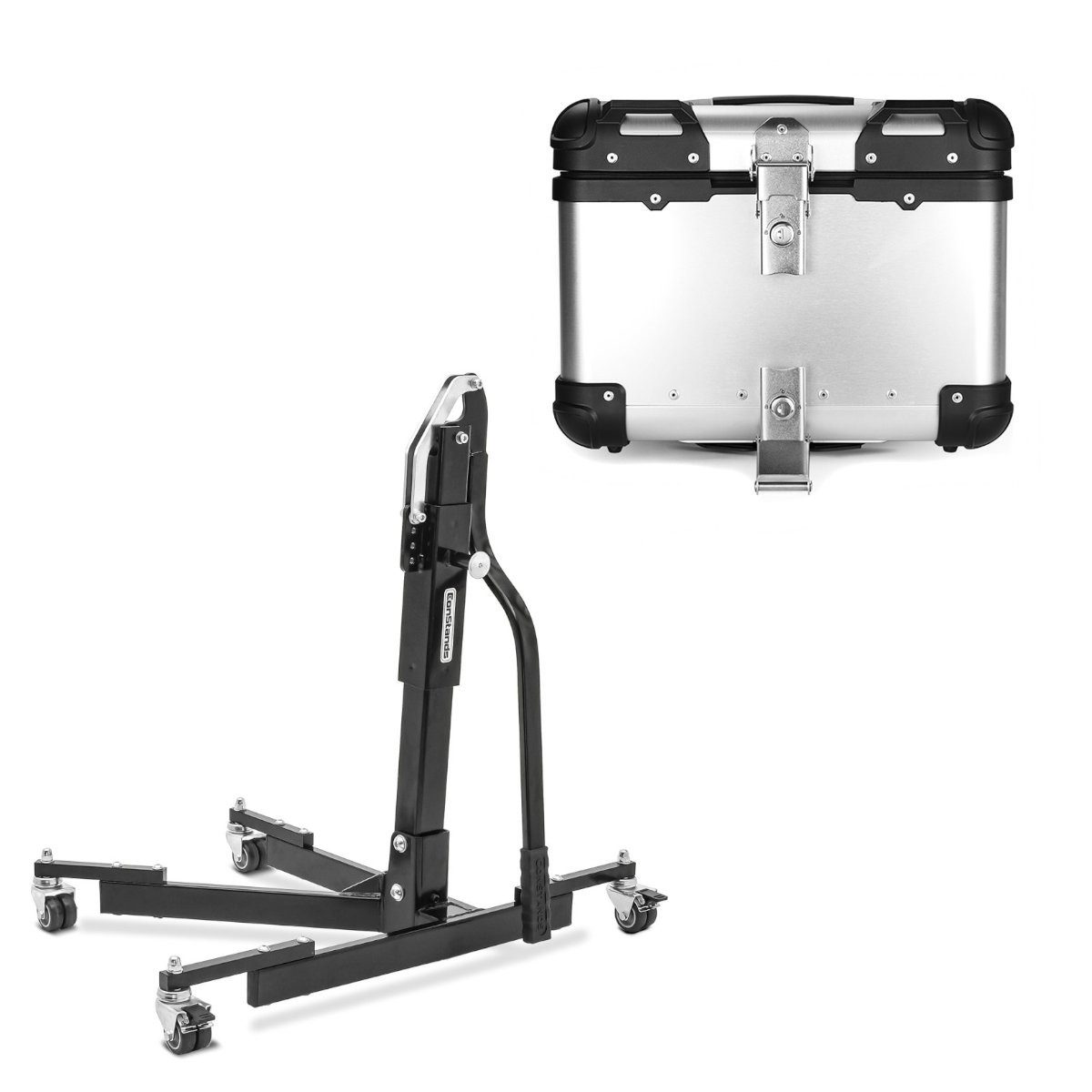 ConStands Motorradheber Set: Zentralständer ohne Adapterplatte sw Power-Evo # mit Motorrad Alu