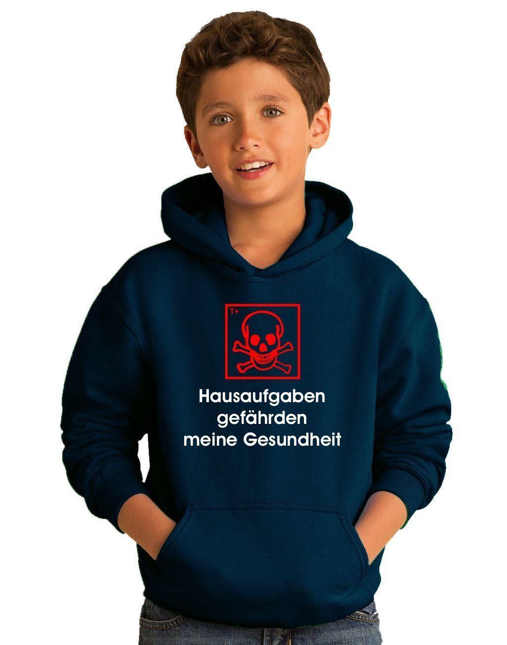 Hausaufgaben gefährden meine Gesundheit ! Als Hoodie Sweatshirt Pulli mit Kapuze für Kinder + Jugendliche Gr.116 128 140 152 164 CM ( Körperhöhe ).