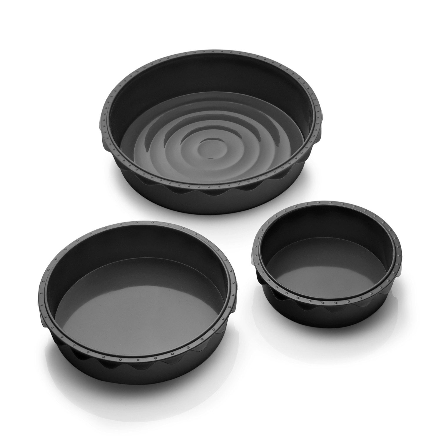 die drei runden Kuchenformen sind ineinander stapelbar und brauchen deshalb nur sehr wenig Platz im Küchenschrank.
