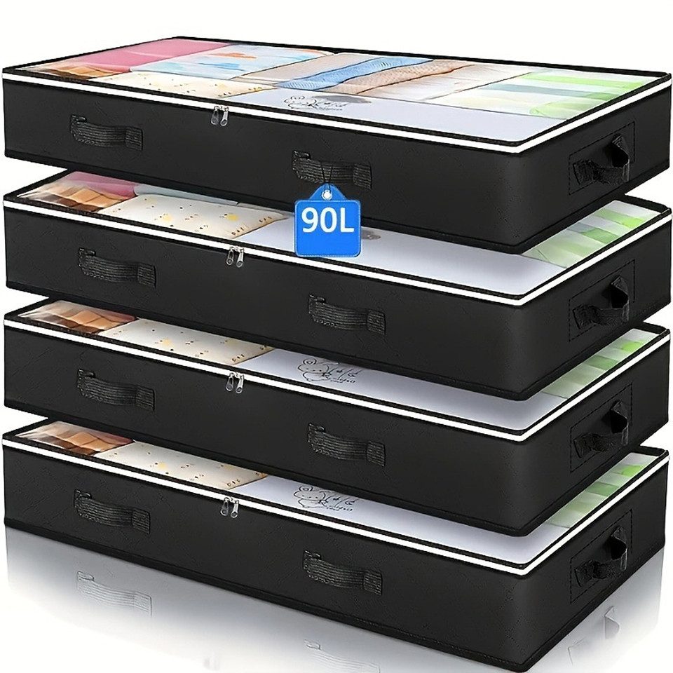 Klarsichtfenster Die Unterbett-Aufbewahrungsbehälter verfügen über ein großes transparentes Fenster, durch das Sie Ihre Gegenstände auf einen Blick finden und schnell darauf zugreifen können. Der Unterbett-Organizer kann unter Betten, in Schränken, auf Regalen oder unter dem Sofa verwendet werden. Eine gute Wahl für Schlafzimmer, Wohnheimzimmer, Keller und mehr.
