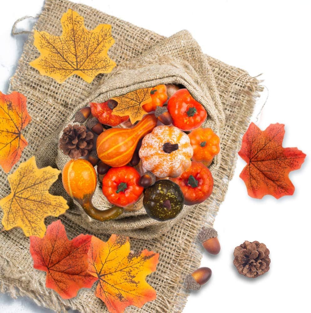Premium Qualität: Die deko Kürbisse werden aus umweltfreundlichem, geschäumtem Kunststoff, Handgefühlskleber usw. hergestellt. keine Angst vor Kollisionen; wird nicht brechen; wird nicht verrotten; wird sich nicht verschlechtern; wird nicht stinken; Größe: Kürbis, 7*13cm. Tannenzapfen, 5.5*6cm. Eichel, 3.5*2cm. Ahornblatt, 7*8cm.