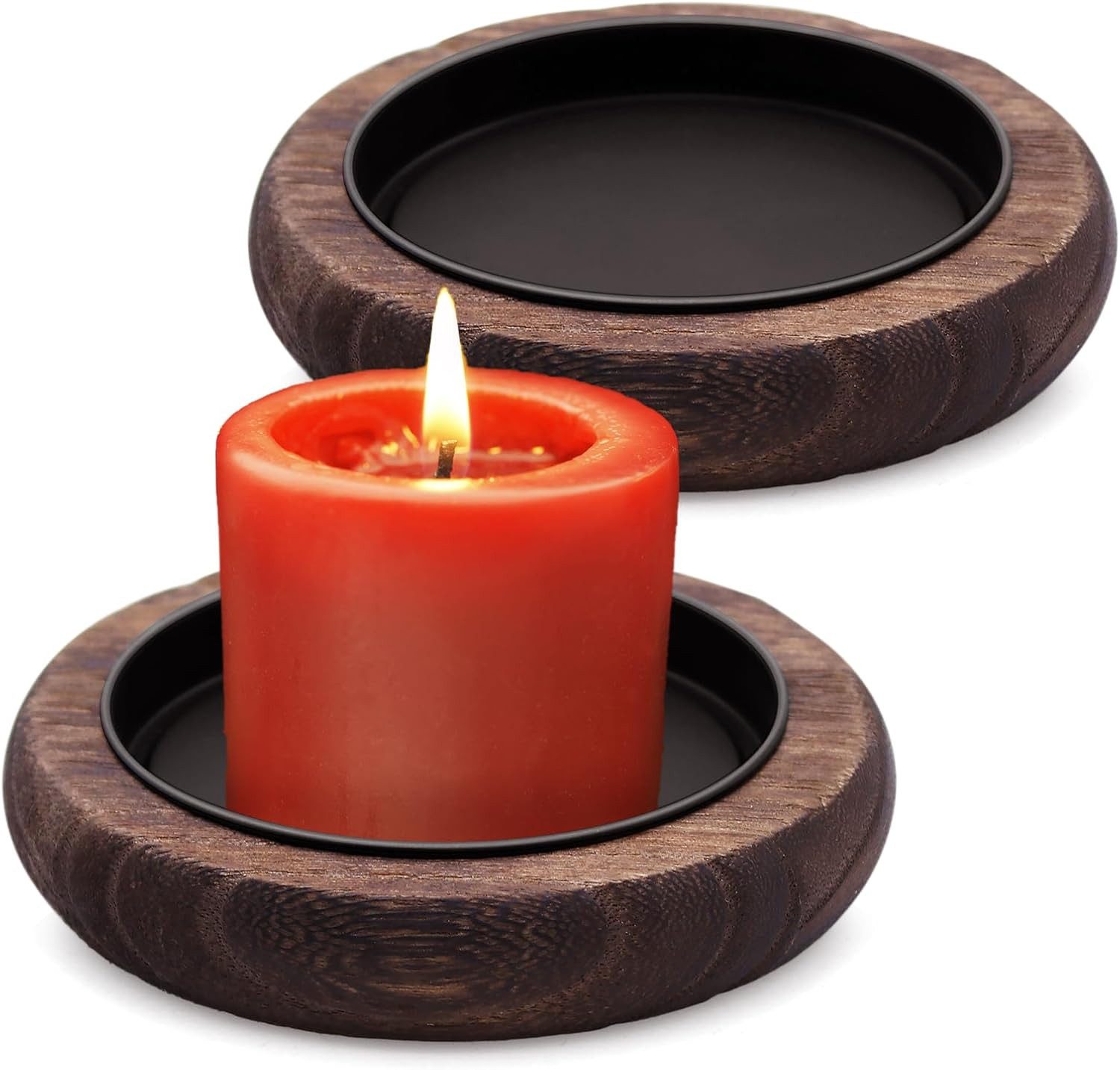 Verpackungsinhalt: Sie Erhalten 2 Stück Kerzenhalter Holz, Kerzenteller Außendurchmesser 11 cm, Innendurchmesserr 8 cm, Höhe 2 cm. Kerzenuntersetzer Holz Verfügt über eine Vertiefte Struktur Metallpalette die Ihre Möbel vor Wachsflecken Schützt Halten Sie Ihre Möbeloberflächen Sauber und Ordentlich