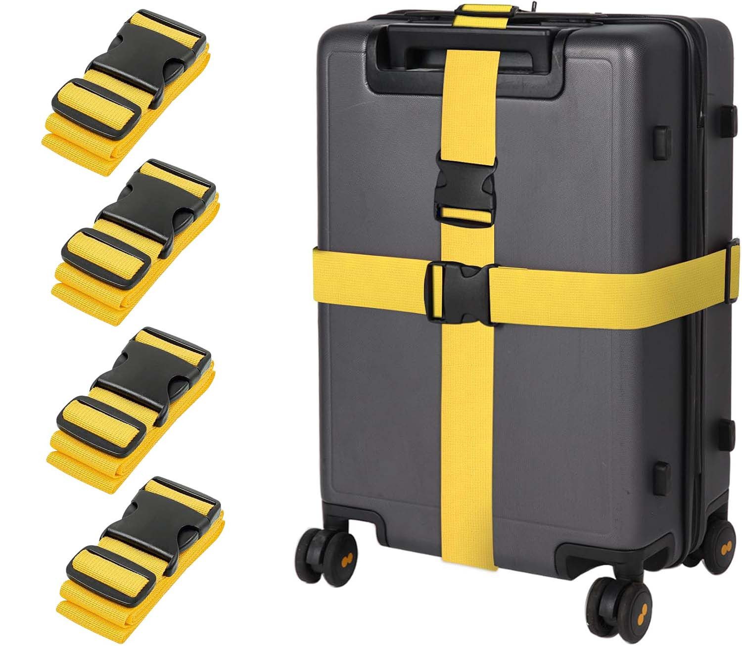 EINSTELLBARE LÄNGE: Die maximale Длина des strapazierfähigen Gepäckgurtes beträgt bis zu 180cm/70,87 Zoll, die Длина kann flexibel nach den tatsächlichen Bedürfnissen eingestellt werden und passt sich perfekt an alle Arten von Koffern zwischen 20 Zoll und 32 Zoll an, und das 5 cm/1,96 Zoll breite Sicherheitsschnallendesign erhöht die Stabilität der Befestigungen
