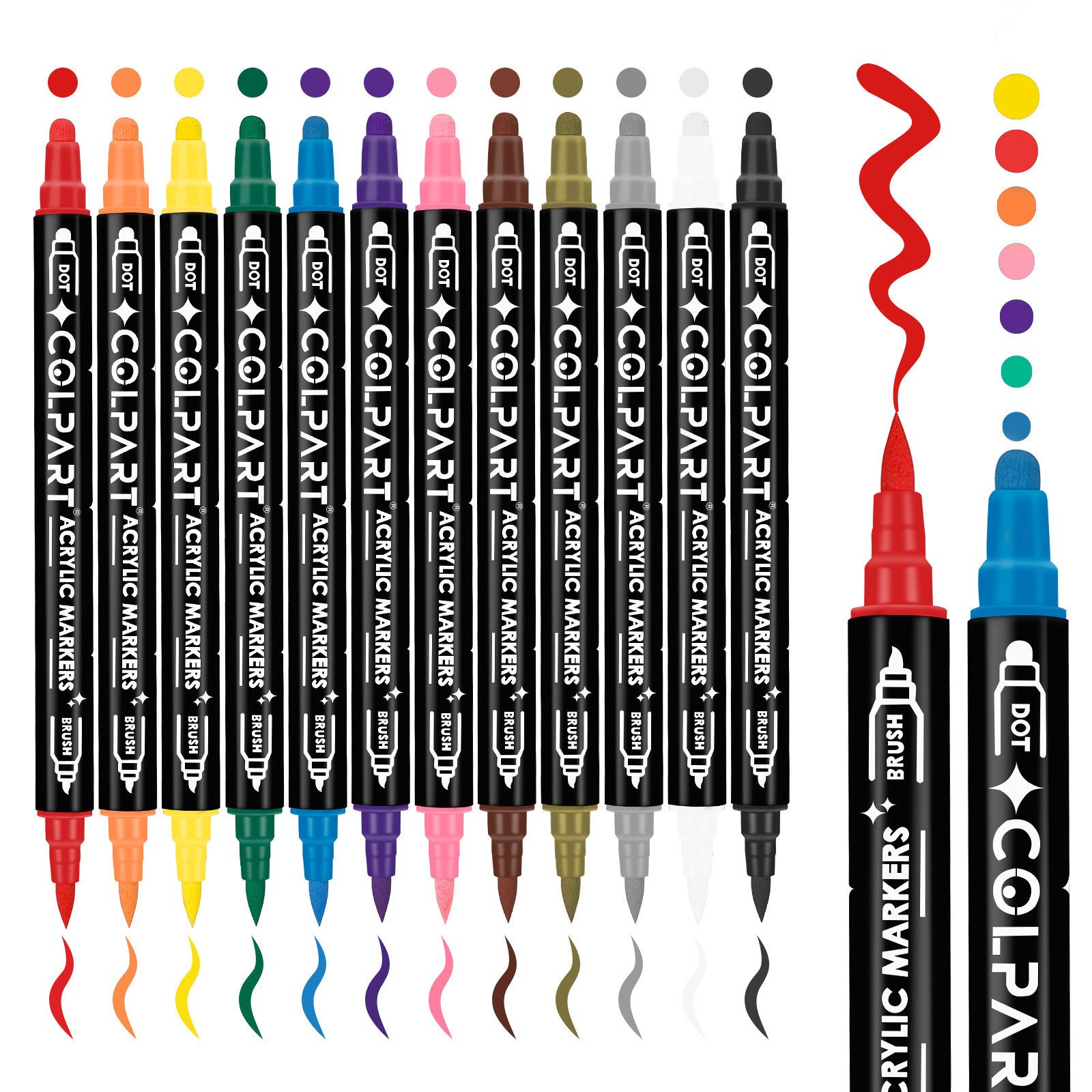 Acrylmarker in 12/ 26 leuchtenden Farben, doppelendig, auf Wasserbasis. Kann auf fast allen Oberflächen wie Papier, Karton, Metall, Steinstiften, Leinwänden, Holz, Kunststoff, Leinwand, Stoff, Keramik und mehr verwendet werden. Ideal zum Malen, Zeichnen, Kalligraphieren, Beschriften und Skizzieren. Hochwertige, undurchsichtige Tinte auf Wasserbasis.