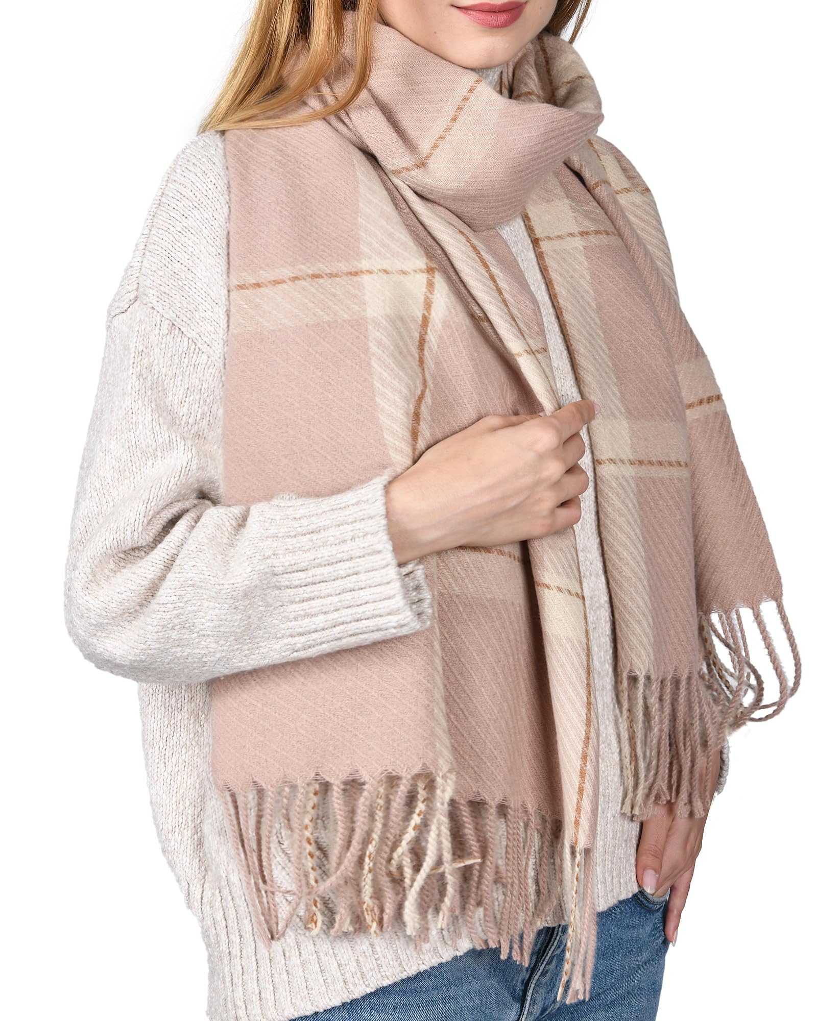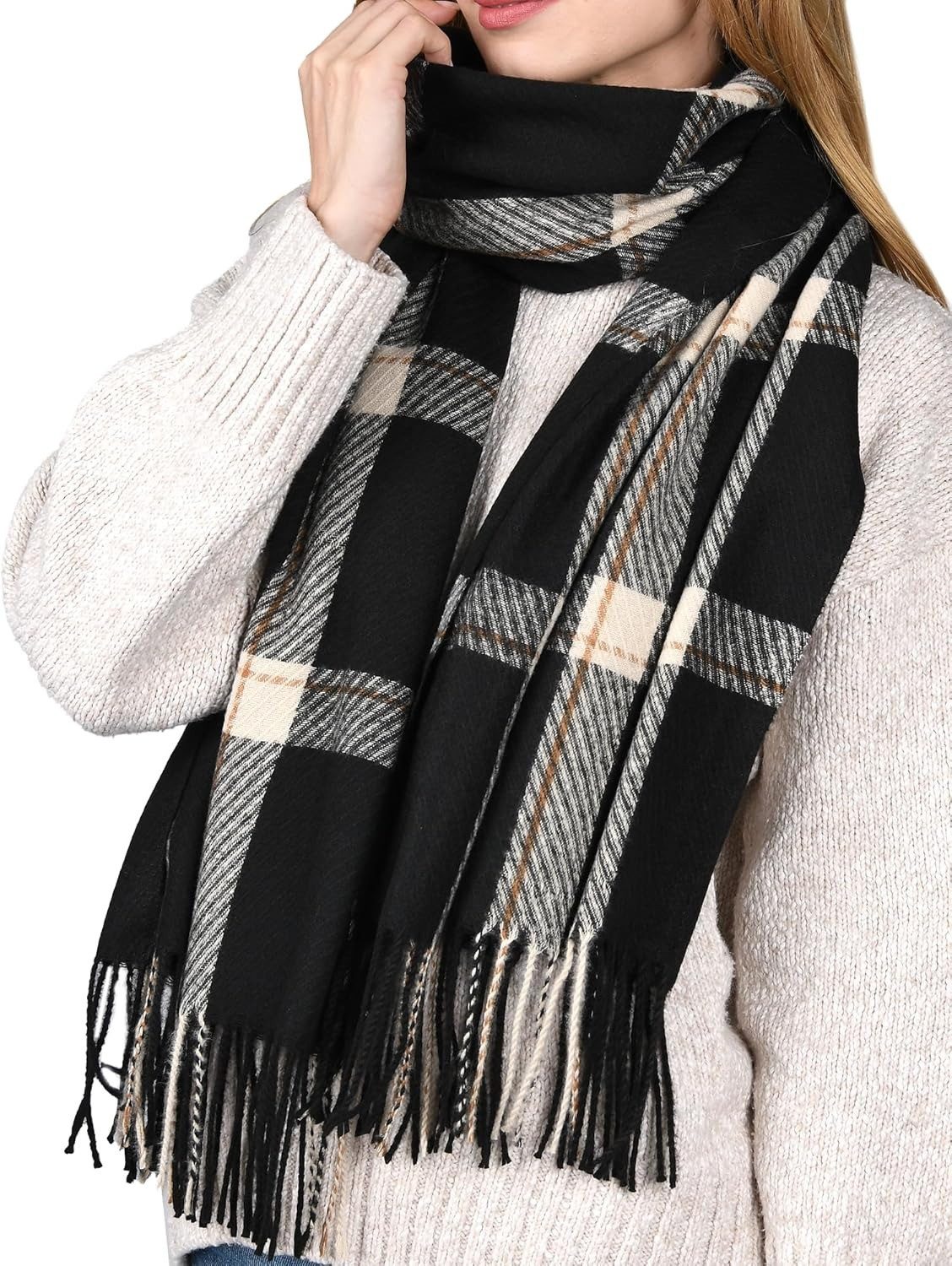 Das klassische Karomuster und die Fransen verleihen dem Schal sowohl modischen Charme als auch praktische Funktionalität. Er lässt sich hervorragend mit Alltagskleidung kombinieren und passt perfekt zu Rollkragenpullovern, Jeans, Kleidern und vielem mehr. Eine ideale Wahl, um Ihren Look zu vervollständigen.