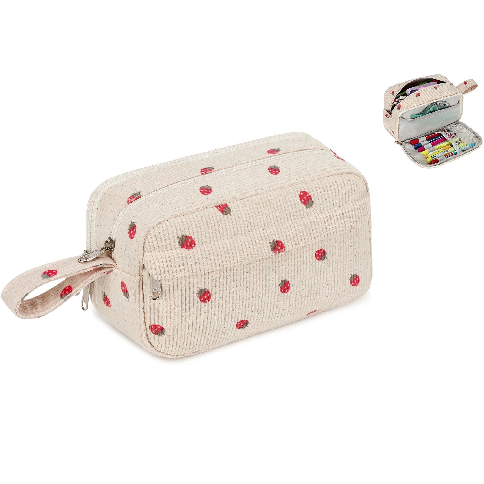 Coonoor Schreibgeräteetui Stiftetui, Große Kapazität Federmäppchen mit Reißverschluss, (1-tlg), Schulbedarf für Teenager-Mädchen, Erdbeerdesign, praktisches Schuletui