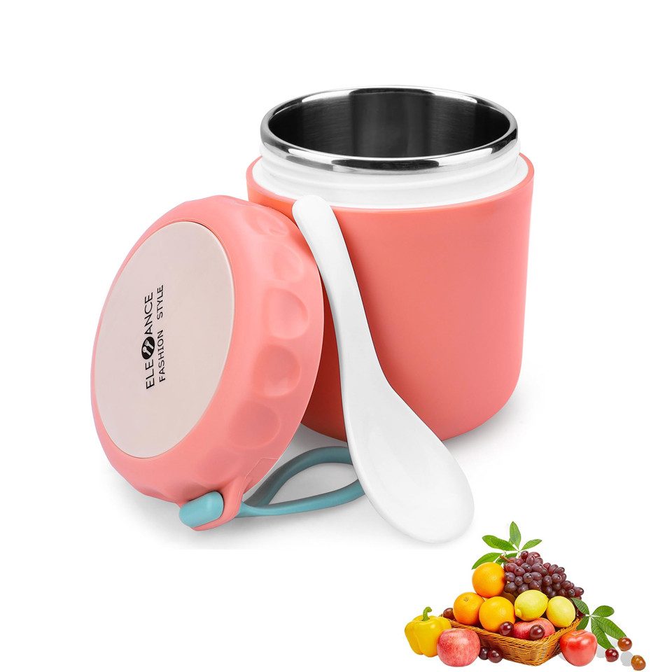 Auslaufsicher & TragbarDank des Silikon-Dichtungsrings ist der Lebensmittelbehälter vollständig versiegelt und leicht zu öffnen. Der isolierte Lunchbehälter mit einem niedlichen Löffel ist praktisch zum Essen und einfach in einem Rucksack zu transportieren. Ideal für Erwachsene, Kinder, Schule, Büro, Wandern, Picknicks und andere Outdoor-Aktivitäten.