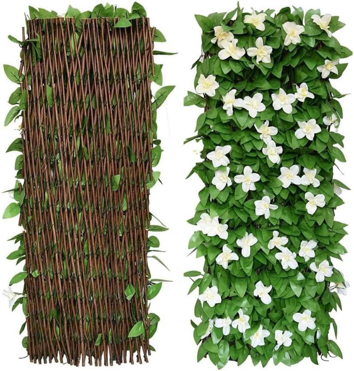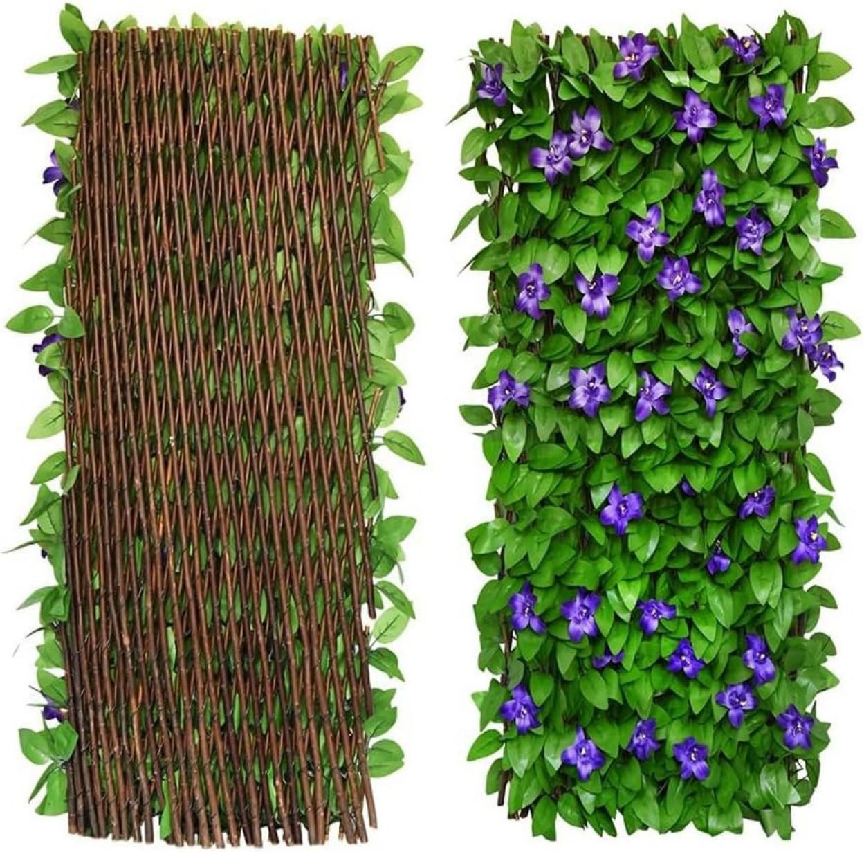 MaterialienDer Zaun besteht aus echtem Weidenrahmen mit dekorativen künstlichen Efeublättern und Blumen befestigt, bietet ein natürliches Aussehen, keine Wartung, kein Gießen, kein Trimmen, leicht mit Wasser zu reinigen.