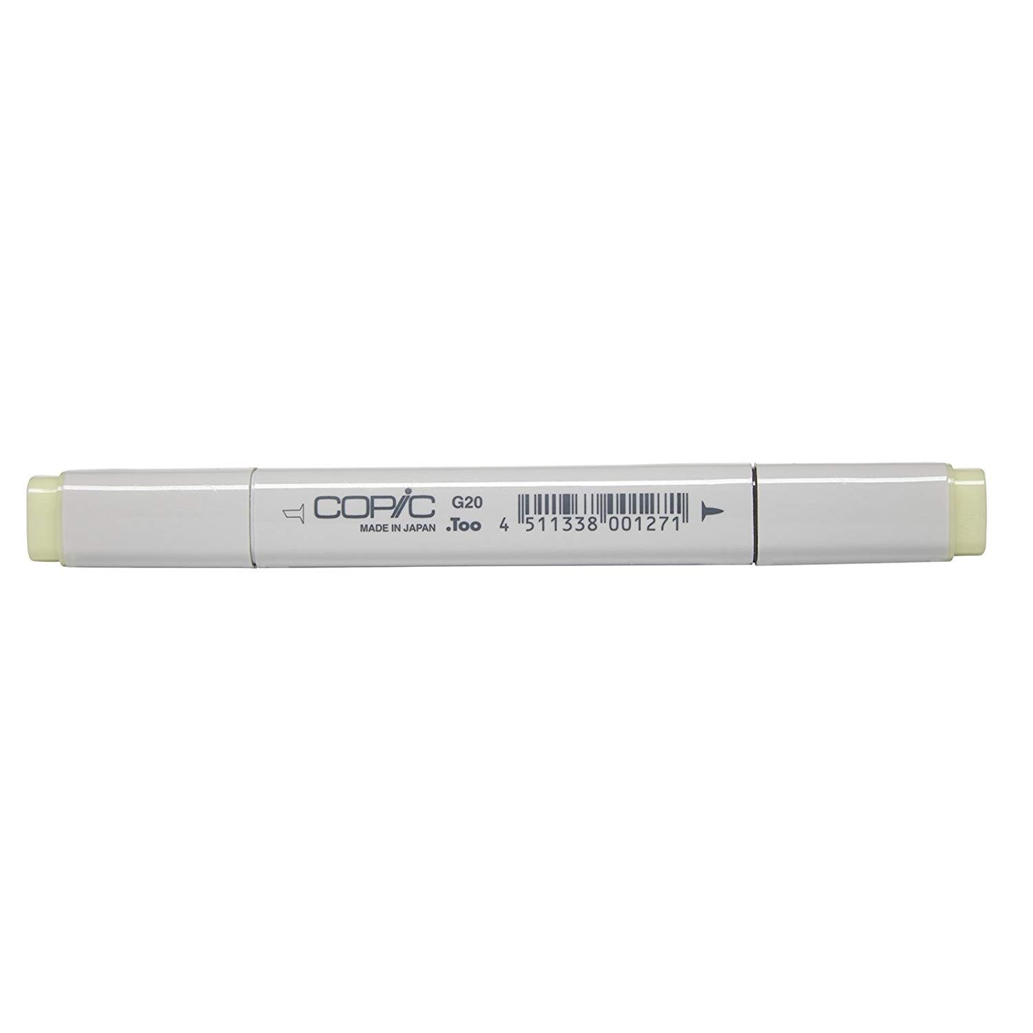 Der Copic Classic Marker G20 ist in 214 leuchtenden Farben auf Alkoholbasis erhältlich. Die Tinte ist toxikologisch unbedenklich und nahezu geruchlos, was sie ideal für langanhaltende kreative Arbeiten macht. Die Kappen des Markers sind in Schreibfarbe eingefärbt, um eine schnelle und exakte Identifizierung der Farbtöne zu ermöglichen.