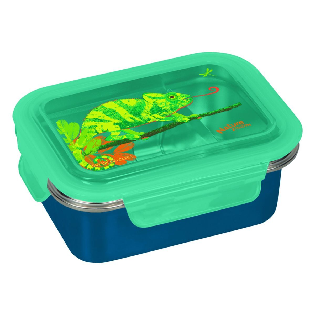 Mit dieser Lunchbox kommen große und kleine Abenteuer*innen voll auf ihre Kosten. Die Dose mit einem Fassungsvermögen von 800 ml ist auslaufsicher und mit einer stufenlos verstellbaren Trennwand im Inneren ausgestattet.