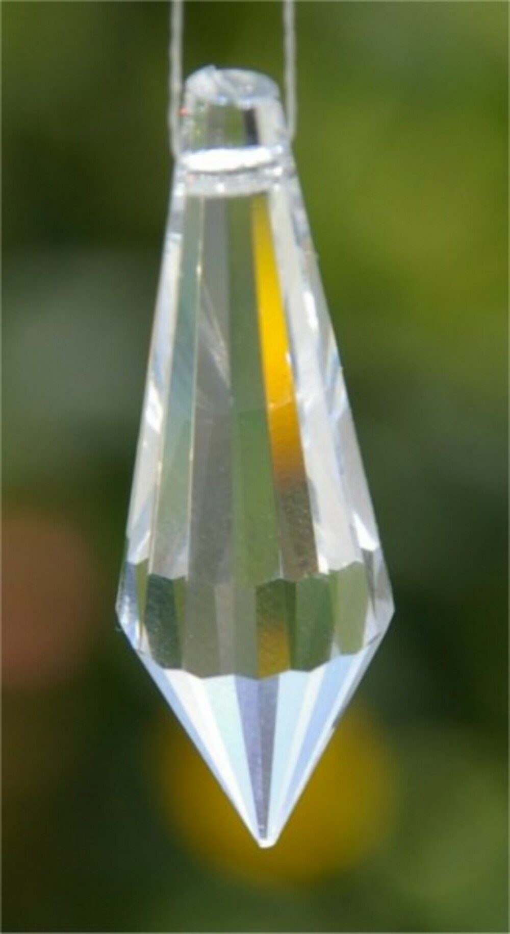 Den Tropfen einfach am Fenster aufhängen. Durch die Spaltung des Tageslichts entstehen viele kleine Lichtpunkte in den Spektralfarben im Zimmer. Eine schöne physikalische Spielerei und beliebte Dekoidee.