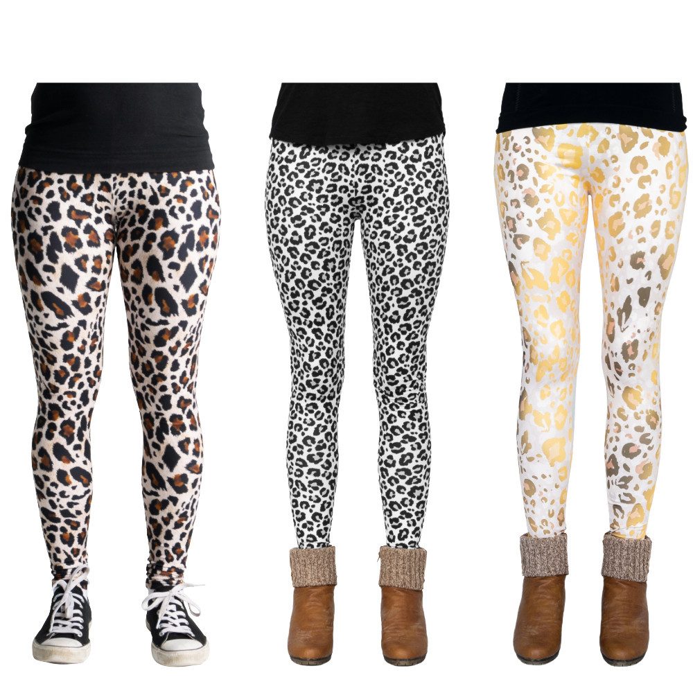 cosey Leggings Leo Line – 3er-Set Leggings im angesagten Leoparden-Design (Leo Leggings-Set, 3er-Set) D03 / D10 / D12
