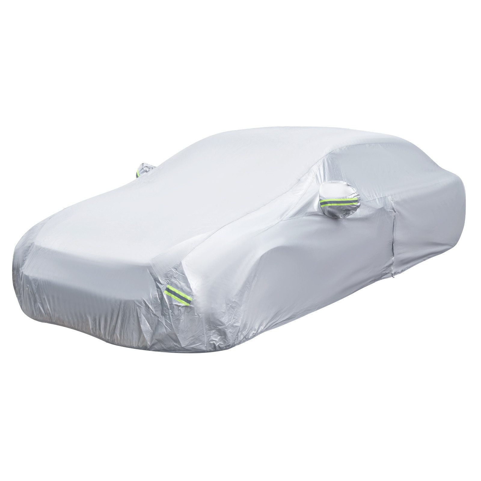 Diese Autoabdeckung ist fachmännisch gefertigt und verfügt über eine dreischichtige Konstruktion, darunter eine hochwertige Aluminiumfolienschicht, eine schützende PE/EVA-Schicht und ein weiches Baumwollfutter. Diese Materialkombination sorgt für unvergleichliche Haltbarkeit und zuverlässigen Schutz für Ihr Fahrzeug. Darüber hinaus bietet diese Abdeckplane mit ihrem fortschrittlichen Wetterbeständigkeitsdesign eine hervorragende UV-Beständigkeit, Regenbeständigkeit und Schneebeständigkeit. Sie schützt Ihr Fahrzeug bei jedem Wetter. Aus Sicherheitsgründen verfügt diese mit durchdachten Details gestaltete Fahrzeugplane über reflektierende Streifen auf der Rückseite für bessere Sichtbarkeit, eine Rückspiegelabdeckung für zusätzlichen Schutz und einen winddichten Streifen mit Schnalle, um die Abdeckung sicher und in einer stabilen Position zu befestigen. Zudem ermöglicht die praktische Reißverschlusstür einen einfachen Zugang zu Ihrem Fahrzeug. Sie ist auch wirklich nicht schwer zu verwenden.