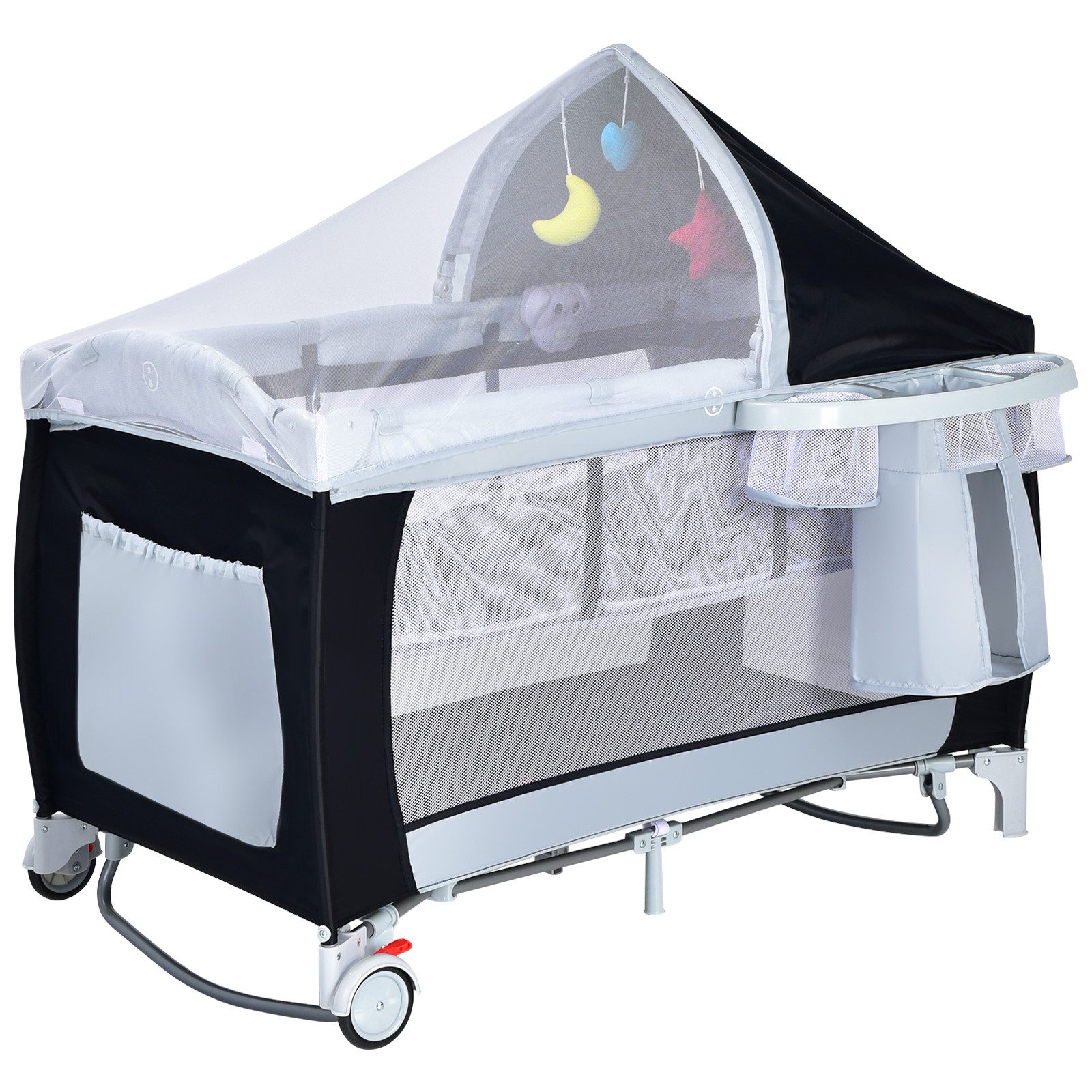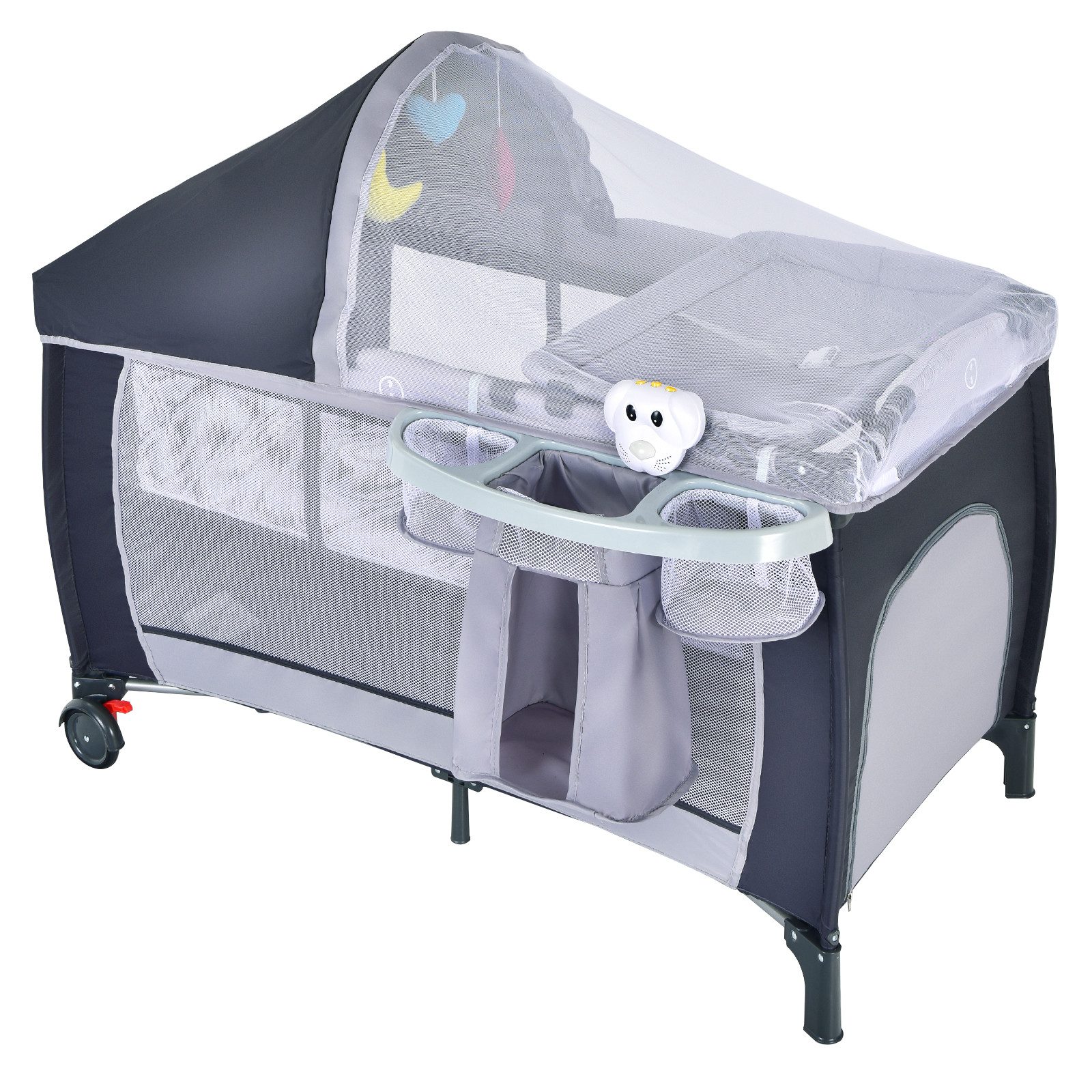 Unser Kinderreisebett mit zwei Ebenen ist eine super Kombination aus Reisebett, Laufstall und Spielplatz, in dem Ihr Schatz nicht nur traumhaft schlafen wird, sondern auch spielend die Welt entdecken kann. Durch die atmungsaktiven Mesh-Gewebe Seitenteile, haben Sie Ihr Baby immer im Blick. Zudem hat das Reisebett eine extra Wickelauflage und einen wunderschönen Spielbogen mit farbigen Kuscheltieren. Dank der seitlichen Pflegebox haben Sie stets alle notwendigen Utensilien griffbereit. Das Reisebett ist schnell wieder auf- und abgebaut und dank der praktischen Transporttasche leicht zu transportieren.