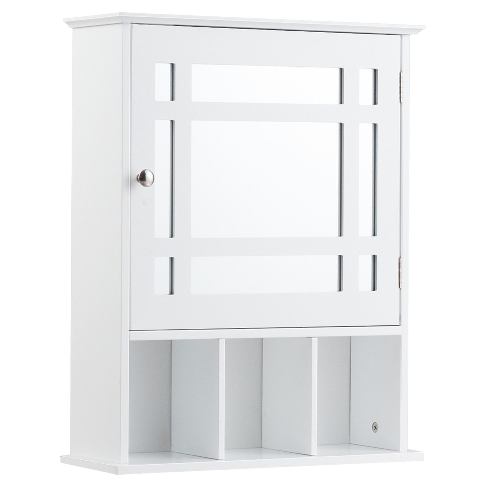 Unser eintüriger Spiegelschrank bringt Ordnung und Eleganz in Ihren Alltag. Er besteht aus hochwertigem MDF mit umweltfreundlicher, weißer Farbbeschichtung, ist wasserabweisend und feuchtigkeitsbeständig und so ideal für den Gebrauch in Räumen mit hoher Luftfeuchtigkeit geeignet. Der Einlegeboden kann je nach Bedarf auf 3 verschiedene Höhen angepasst werden, während die offenen Fächer Ihnen einen praktischen Aufbewahrungsort für alltäglich verwendete Gegenstände ermöglichen. Dank seines schlichten und modernen Designs lässt er sich hierbei problemlos in verschiedenste Einrichtungsstileintegrieren.