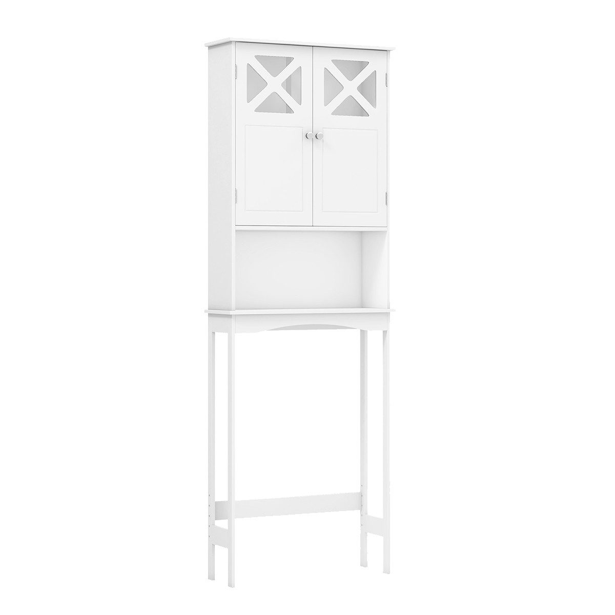 Unser Platzsparer für Badezimmer bietet hervorragende Aufbewahrungslösungen für Badezimmer mit begrenztem Platz. Das Ablageregal über der Toilette bietet Ihnen viel Platz zum Platzieren von Gegenständen, damit Sie ein aufgeräumtes Badezimmer genießen können. In der Zwischenzeit kann dieser platzsparende Badezimmerschrank mit gehärteter Glastür nicht nur Staub aus dem Schrank fernhalten, sondern lässt sie auch bequem finden, was Sie brauchen. Dieses offene Regal ermöglicht einen schnellen Zugriff auf Badzubehör, wenn Sie es brauchen. Der Toilettenregal ist mit einem verstellbaren Regal und einer unteren Stange ausgestattet und ermöglicht die Aufbewahrung von Notwendigkeiten in verschiedenen Höhen. Darüber hinaus macht der solide Rahmen in Kombination mit der Kippsicherung den Badschrank robust und stabil. Dieser weiße Wandschrank verbindet Charme und Praktikabilität perfekt. Ob er sich in einem Badezimmer oder einer Waschküche befindet, er ist ein guter Schrank.