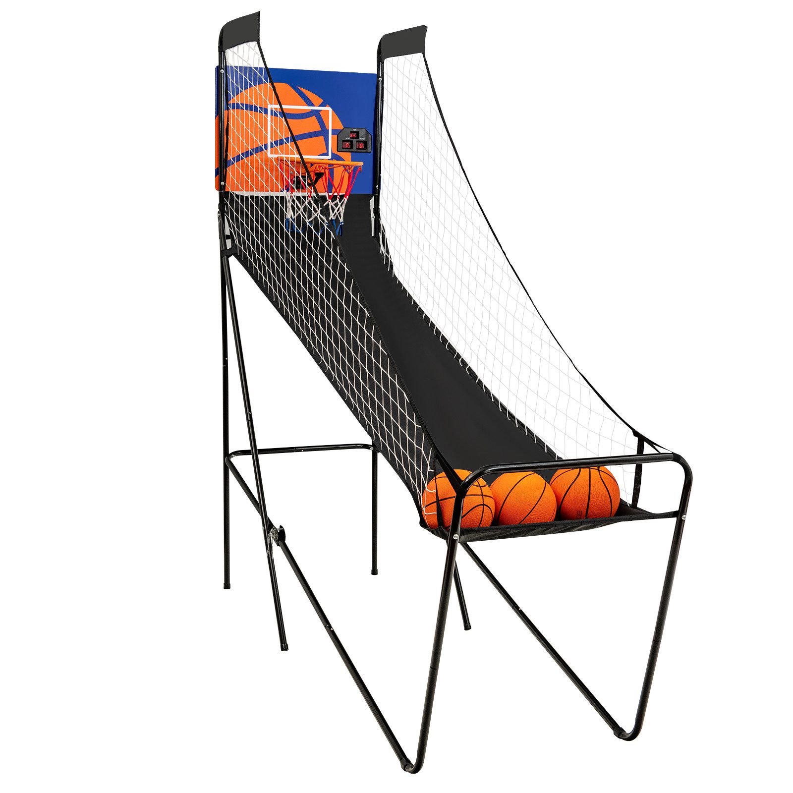 Sie wird mit drei Basketbällen und einer Pumpe geliefert. So können Sie sich der Herausforderung gegen Freunde und Familie stellen. Das Gerät besteht aus robustem Stahl, wodurch eine sichere und zuverlässige Nutzung garantiert ist. Zudem besteht die Rampe aus robustem Oxfordstoff, auf ihr rollt der Ball schnell zurück. Bei Nichtgebrauch können Sie das Spiel zudem schnell und platzsparend zusammenklappen. Damit entstehen unvergessliche Abende!