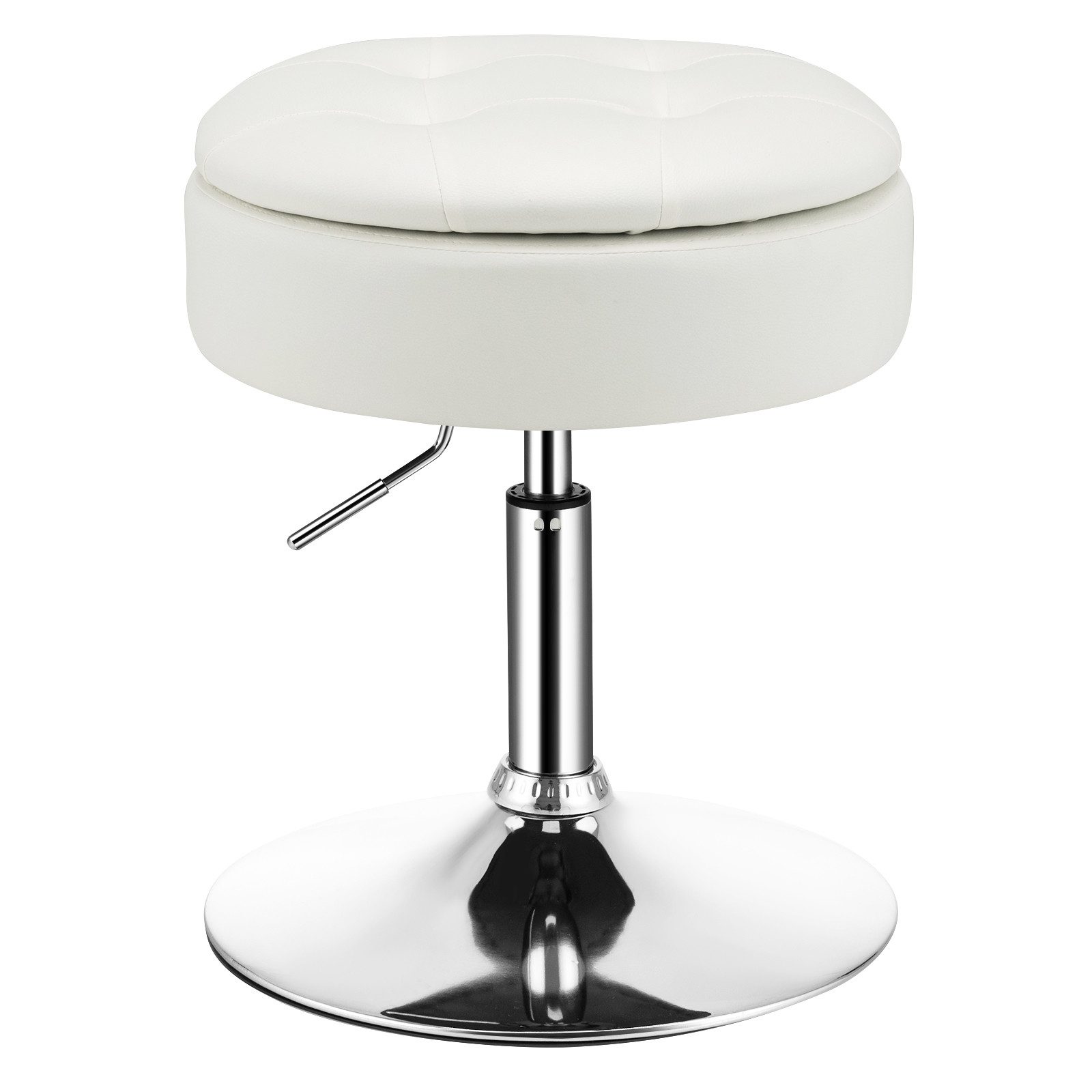 Suchen Sie immer noch nach einem stilvollen und vielseitigen Schminkhocker? Unser Schminkhocker passt perfekt zu Ihnen. Er kombiniert modernen Stil und vielseitige Verwendung, die als Schminkhocker, Aufbewahrungshocker, Beistelltisch und Fußstütze usw. verwendet werden können. Die Sitzhöhe kann je nach Bedarf von 51 cm bis 66 cm eingestellt werden. Der Hocker kann um 360 ° gedreht werden, um ein reibungsloses Sprechen zu ermöglichen, und die Unterseite ist mit einem rutschfesten und kratzfesten Gummiring ausgestattet, um ein Verrutschen beim Drehen zu verhindern. Всеs in allem ist dieser moderne Schminkhocker eine ideale Wahl für Schlafzimmer, Schminkzimmer, Wohnzimmer und so weiter.
