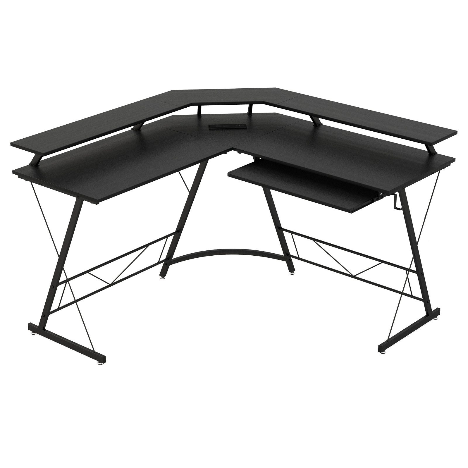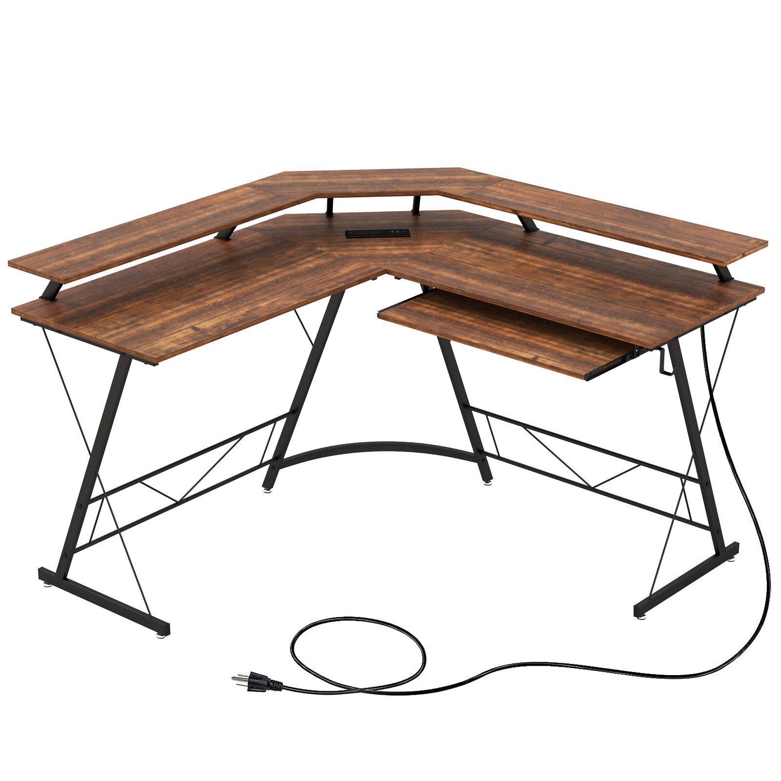 Revolutionieren Sie Ihren Arbeitsplatz mit unserem unglaublichen L-förmigen Computertisch! Dieser Computertisch ist auf maximale Produktivität ausgelegt und bietet ausreichend Platz für alle Ihre Arbeitsanforderungen. Dank der L-förmigen Tischplatte können Sie problemlos an mehreren Monitoren arbeiten. Der Monitorständer in voller Длина sorgt für eine angenehme Betrachtungshöhe und verbessert Ihre Sitzhaltung. Darüber hinaus ist der Schreibtisch mit zahlreichen benutzerfreundlichen Funktionen ausgestattet, darunter einer integrierten Steckdosenleiste für problemloses Aufladen. Bleiben Sie organisiert mit der ausziehbaren Tastaturablage und dem praktischen Aufhängehaken. Außerdem bietet der starke und langlebige Metallrahmen zuverlässigen Halt, während verstellbare Fußpolster für eine stabile Oberfläche auf jedem Boden sorgen.