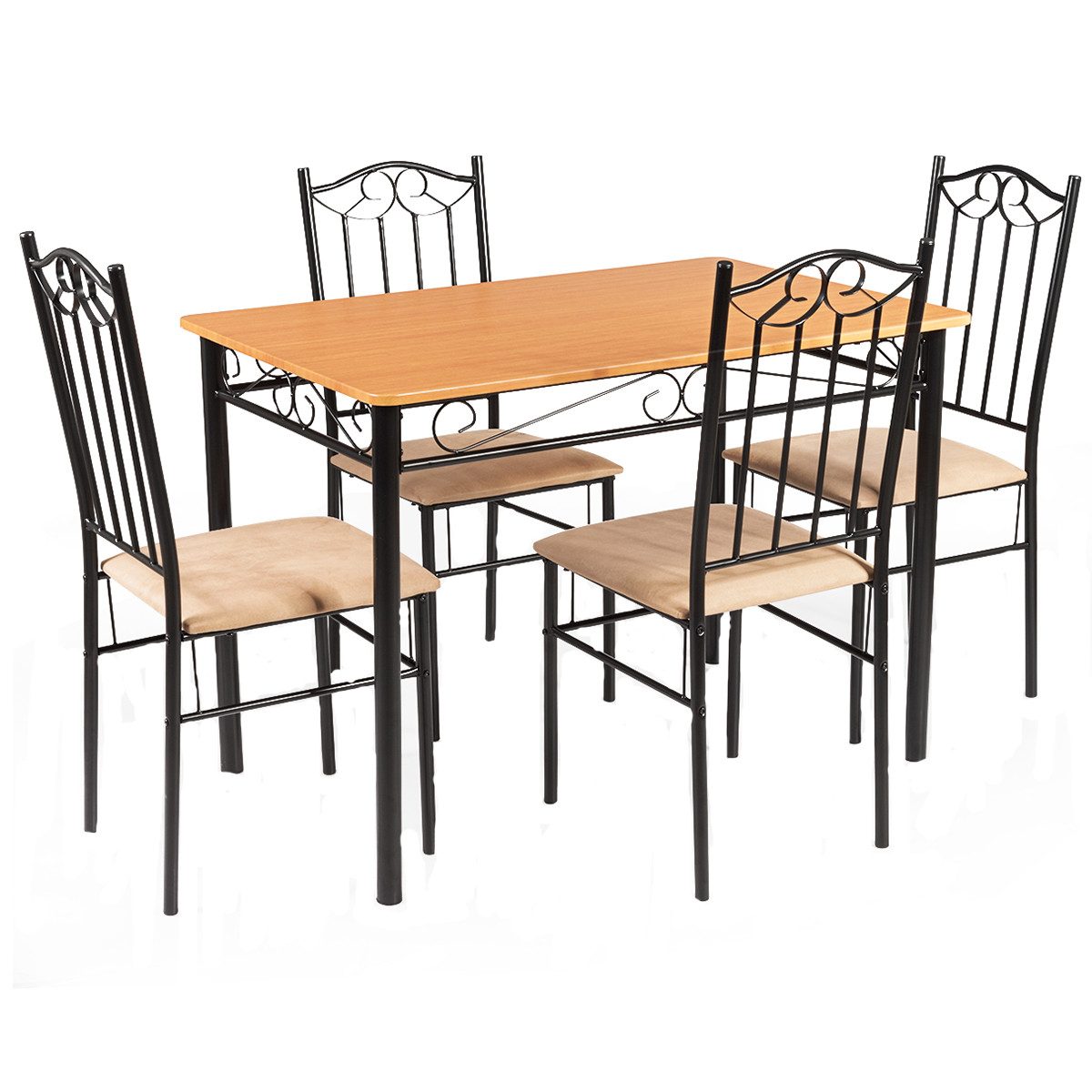 Dieses Esstischset besteht aus vier Stühlen und einem Tisch. Im Grunde kann dieses Esszimmerset also Ihre meisten täglichen Bedürfnisse befriedigen. Все Tisch- und Stuhlkonstruktionen bestehen aus Metallrohren, die sich durch große Robustheit und Haltbarkeit auszeichnen. Dank des Premium-Gestells beträgt die Tragfähigkeit des Tisches bis zu 60 kg, sodass Sie viele Gegenstände frei auf dem Tisch platzieren können, und die Tragfähigkeit jedes Stuhls beträgt bis zu 80 kg, was Ihre Sicherheit beim Sitzen auf jeden Fall garantiert. Darüber hinaus gibt es einige spezielle Teile, die Ihr Nutzungserlebnis verbessern sollen. Die Oberfläche des Tisches besteht aus strapazierfähigem MDF, das sich durch hervorragende Wasser- und Kratzfestigkeit auszeichnet. Das Sitzkissen des Stuhls besteht aus hochdichtem Schaumstoff, der Ihren Komfort erheblich verbessert und sich nicht so leicht verformt.