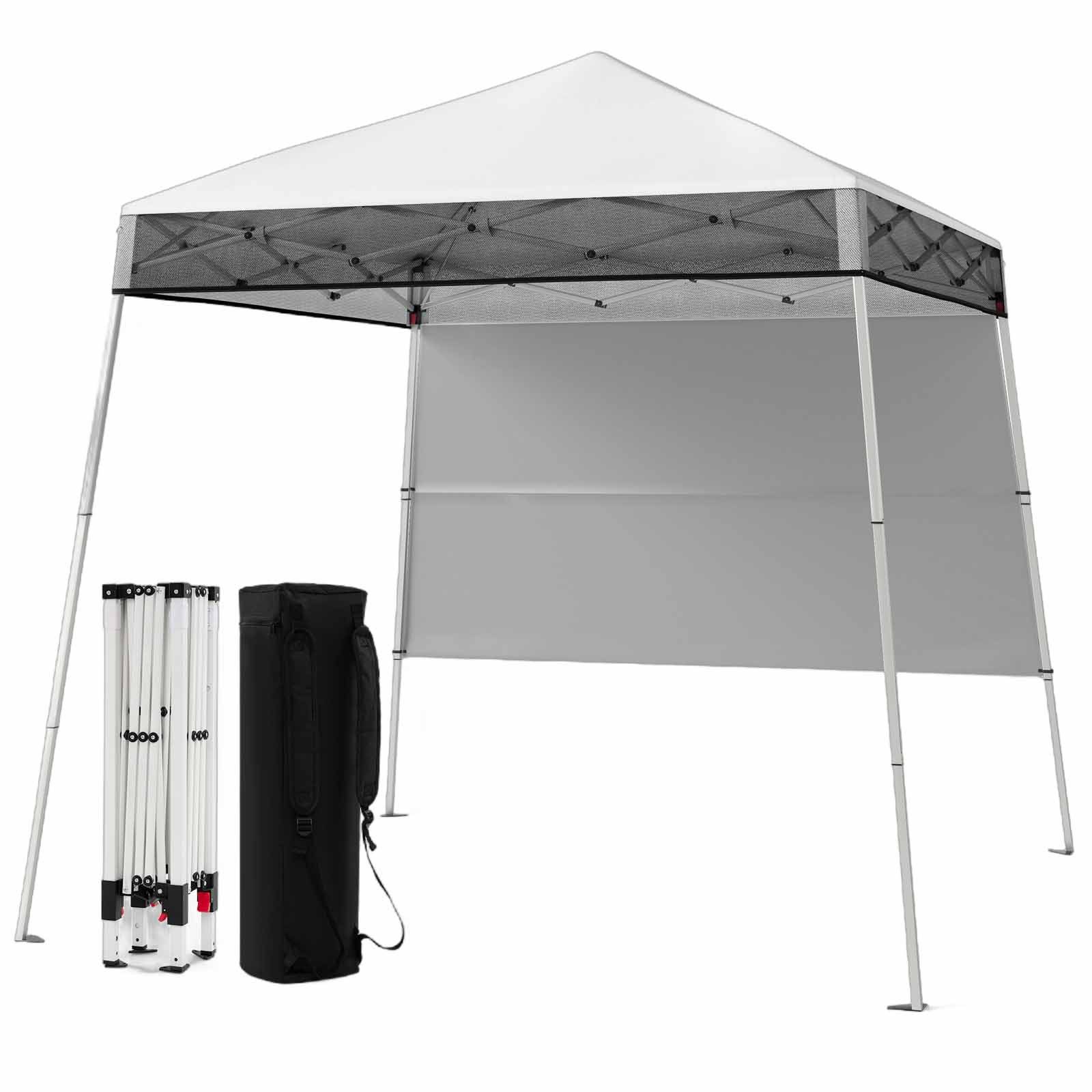 Der Pop-up Pavillon ist mit einem Seitenpaneel ausgestattet, das vor Sonnenlicht aus bevorzugten Winkeln schützt und es zu einer perfekten Wahl für gesellschaftliche Zusammenkünfte, Sportveranstaltungen, Feiern oder Grillpartys macht. Das Dach des Outdoor-Eventzelts ist aus Oxford-Gewebe gefertigt und resistent gegen Risse. Zudem ist das Dach mit einer silbernen Beschichtung behandelt, die einen außergewöhnlichen Schutz vor Sonnenstrahlen bietet. Zur Gewährleistung der Stabilität sind 4 Bodenhaken enthalten, um das Zelt sicher zu verankern.