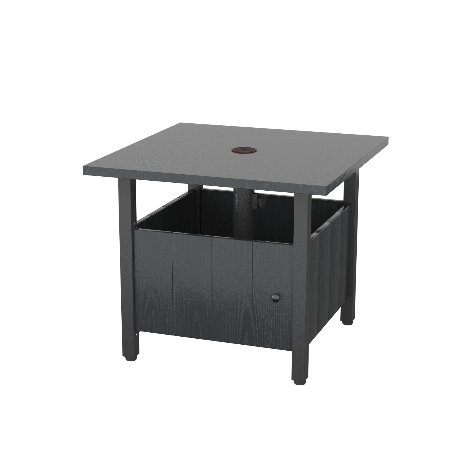Verbessern Sie Ihren Außenbereich mit unserem vielseitigen Pool-Beistelltisch. Dieser Schirmsockeltisch verfügt über eine robuste Zink-Eisen-Legierung mit verstellbaren Füßen, die Stabilität auf unebenen Flächen gewährleisten. Darüber hinaus beinhaltet der integrierte Schirmständertisch 2 Sandsäcke, die jeweils bis zu 22 lbs halten, und bietet durch eine clever gestaltete Vordertür zusätzlichen inneren Stauraum. Er ist eine ideale Ergänzung für Ihren Garten, die Terrasse oder den Poolbereich.