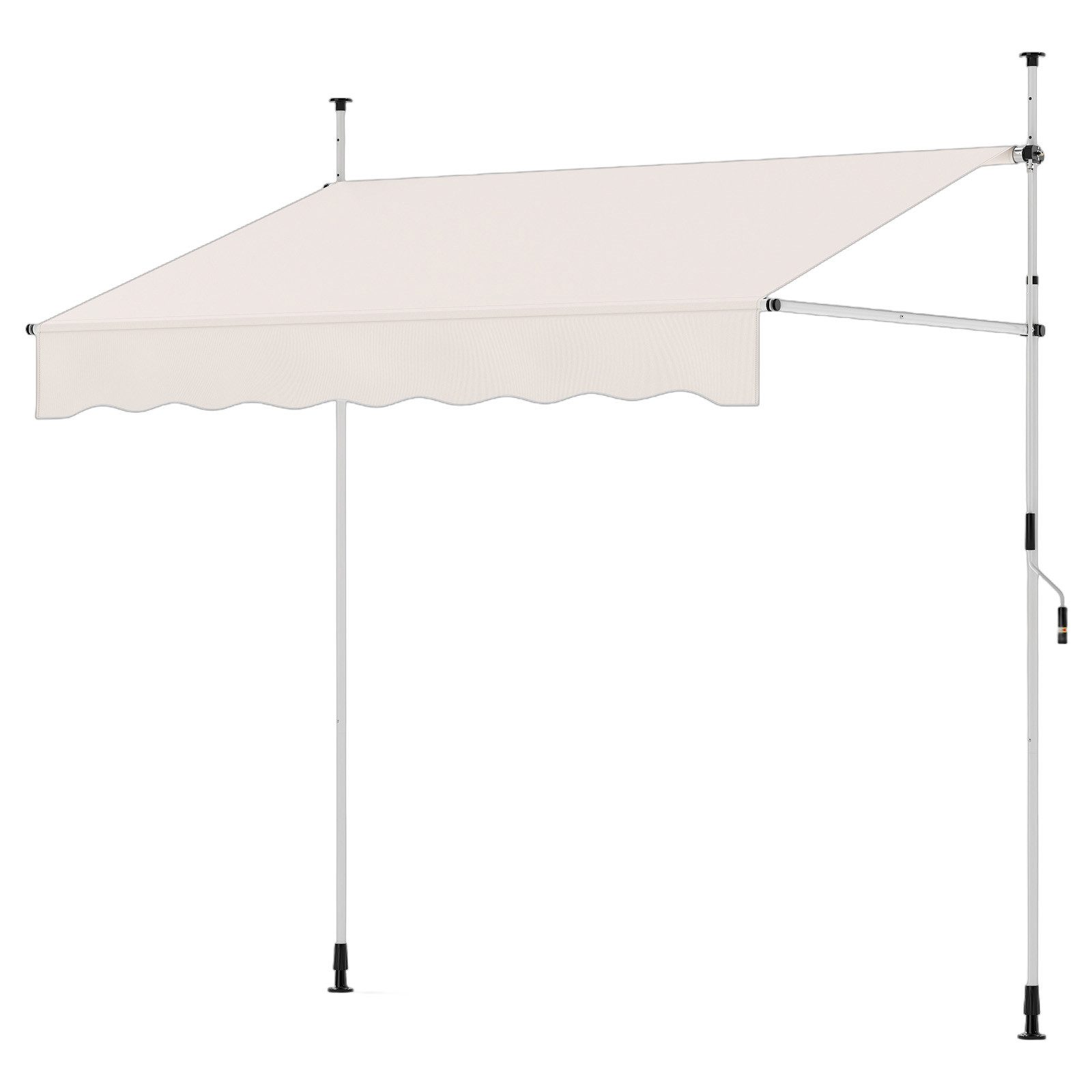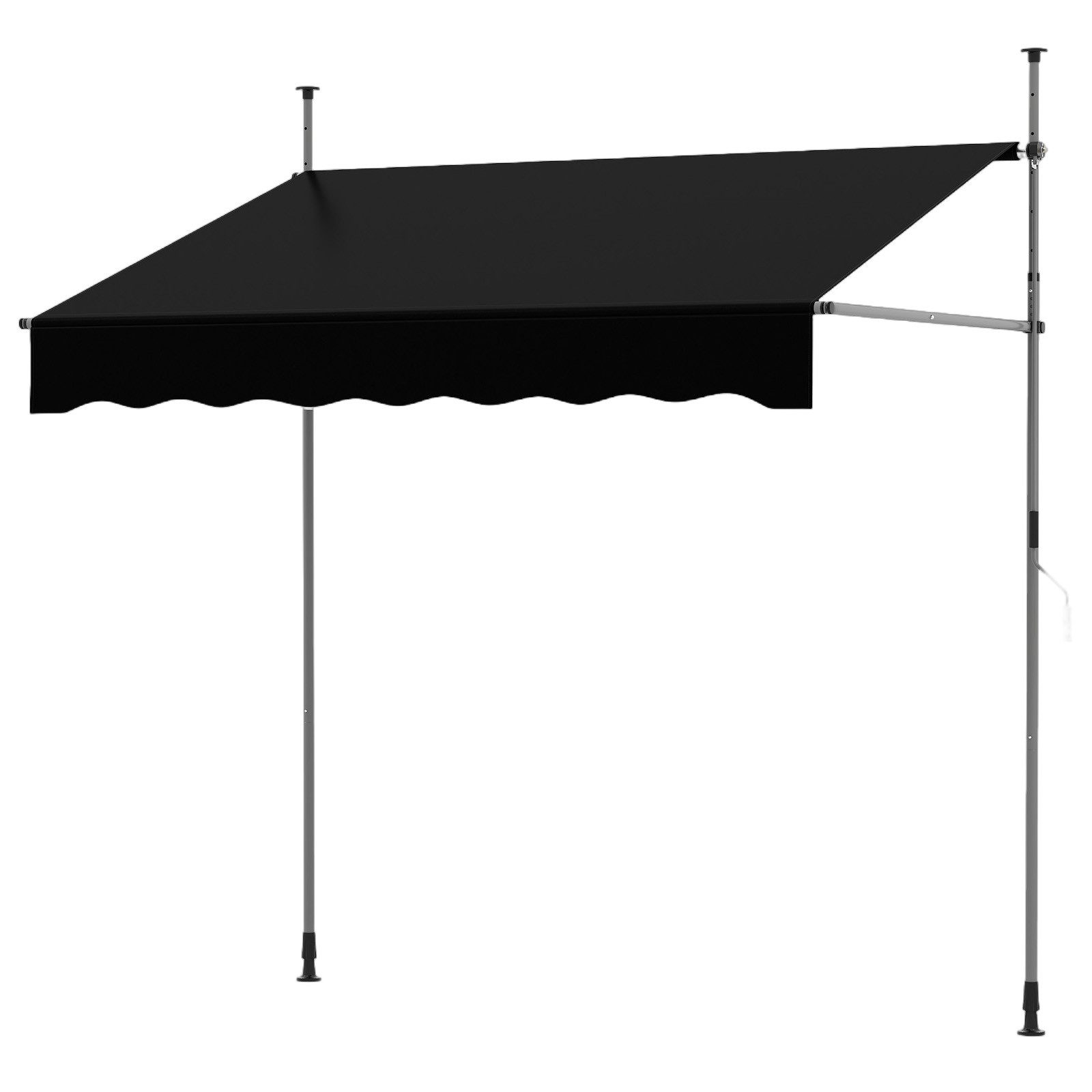 Suchen Sie Zuflucht vor brennender Hitze mit der einziehbaren Terrassenmarkise. Hergestellt aus Polyester mit einer wasserbeständigen PU-Beschichtung, bietet die manuelle einziehbare Markise Sonnenschutz. Mit dekorativen Kanten dient der höhenverstellbare Fenstersonnenschutz als Sichtschutzvorhang für entspannte Stunden im Freien. Die stabilen Metallrohre sind mit verstärkten Schrauben fest gesichert und gewährleisten Stabilität. Mit verstellbaren Stangen und einem Kurbelgriff ermöglicht die Außensonnenschutzmarkise eine mühelose Anpassung der Höhe von 210 cm bis 300 cm sowie des Winkels von 0° - 180° für optimalen Schatten. Darüber hinaus ist die Installation ohne Bohren problemlos.