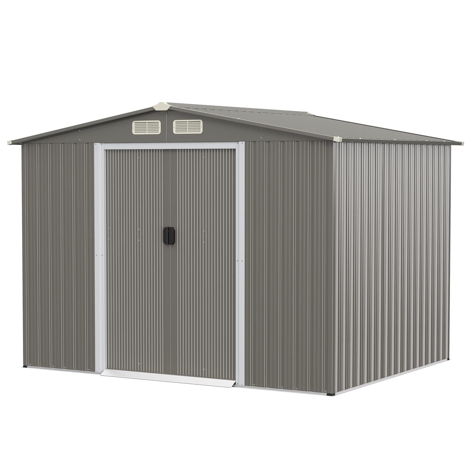 Halten Sie Ihren Garten oder Hof sauber mit unserem Lagerschuppen! Dieser 260 cm x 207 cm x 180 cm große Lagerschuppen bietet Platz für große Werkzeuge und Fahrräder und eignet sich daher nicht nur als Werkzeugraum, sondern auch als Abstellraum im Freien, Unterstand für ihre Mülltonnen oder Haustierbereich. Unser Geräteschuppen besteht aus verzinktem Stahl und einem Ziegeldach aus farbigem Stahl und verfügt über eine hervorragende Wetterbeständigkeit und Stabilität. Außerdem haben wir 4 vertikale Rohre an allen vier Seiten des Gesamtrahmens hinzugefügt, um den Windwiderstand zu verbessern.