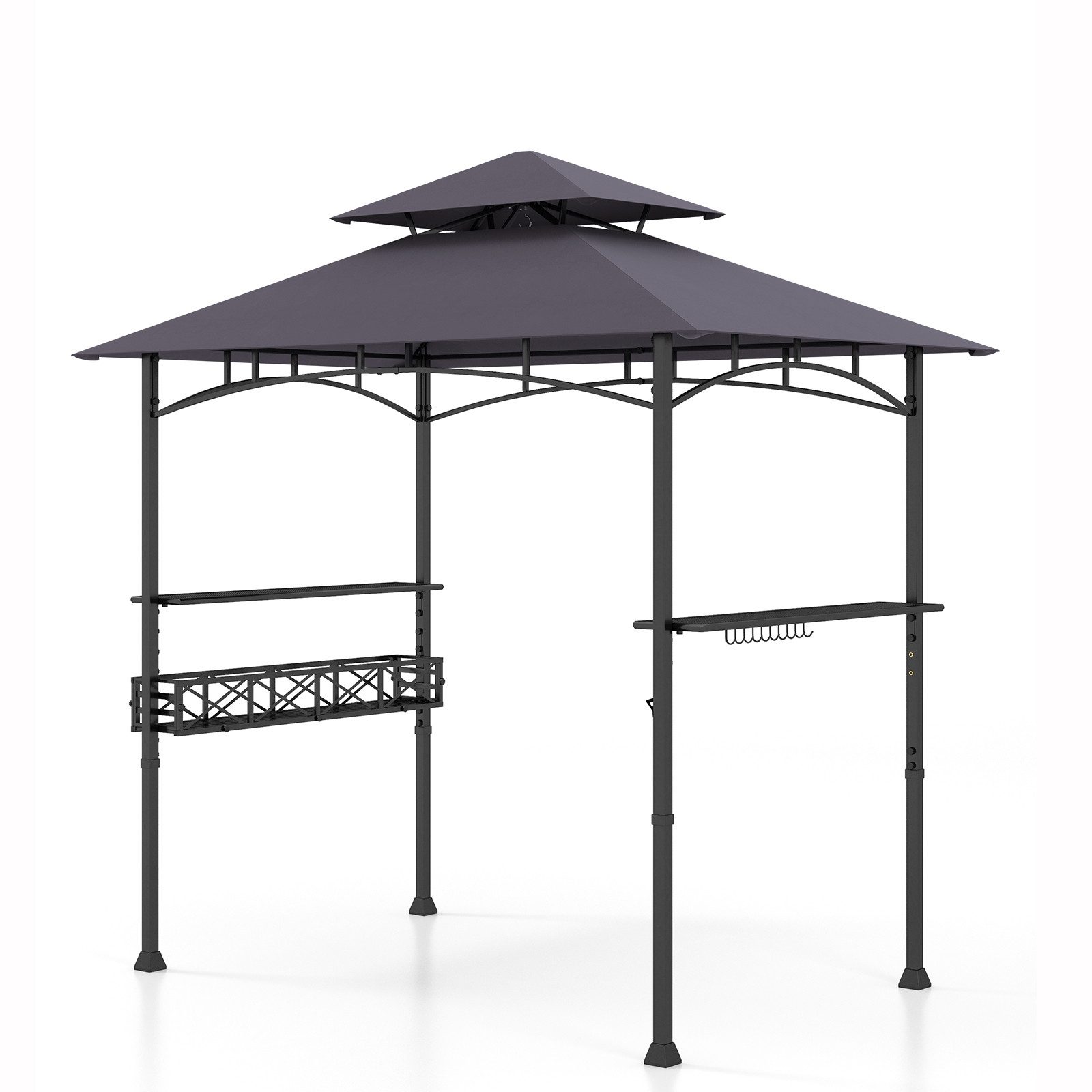 Unser Grillpavillon verfügt über eine Grundfläche von 3,7 m² und bietet einen geräumigen Rückzugsort zum Grillen im Freien. Es gibt Bartheken mit 2 Seitenablagen und einem integrierten Flaschenöffner, so dass Sie Speisen und Getränke bequem rund um den Pavillon genießen können. Außerdem ist er mit einem großen Aufbewahrungskorb und mehreren Haken ausgestattet, sodass Sie die wichtigsten Grillutensilien immer griffbereit haben. Впередhin verfügt er über ein sonnenschützendes und flammbeständiges Polyesterdach und einen rostfreien Metallrahmen, der verschiedenen Wetterbedingungen standhält und eine langfristige Nutzung im Freien gewährleistet. Und es gibt eine doppelstöckige Oberseite und an Pfählen befestigte Platten, die den Pavillon stabiler machen. Dank der Rändelschraubenverbindungen ist für den Aufbau kein Werkzeug erforderlich, denn die Installation dieses Grillpavillons ist einfacher als je zuvor. Schaffen Sie mit seiner Hilfe unvergessliche Erinnerungen mit Familie und Freunden.