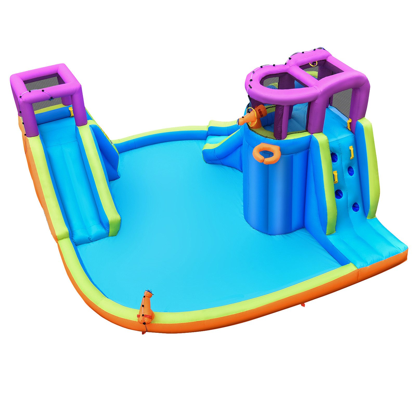 Unsere Wasserrutsche ist einzigartig ausgestattet mit einem Wasserschlauch mit vier Wasserspritzern. Sie bietet Kindern im heißen Sommer ein wunderbares Planschvergnügen: Rutschen, Klettern, Hüpfen, Verstecken, Basketballspielen und eine lustige Wasserschlacht mit zwei eingebauten Wasserpistolen. Hergestellt aus hochfestem Oxford-Gewebe, trägt sie das Gewicht von drei Kindern gleichzeitig (bis zu 159 kg). Auch nach mehrmaligem Nass- und Trockengebrauch reißt sie nicht so schnell und ist somit langlebig.