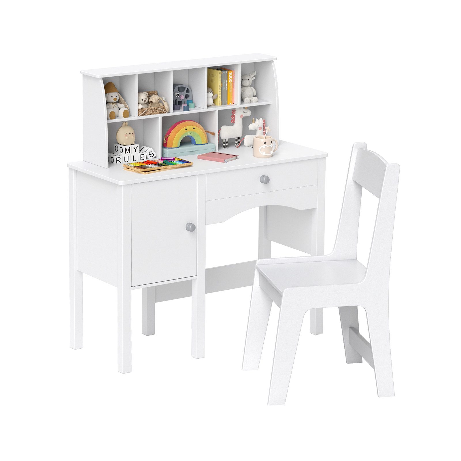 Machen Sie Ihrem Kind das perfekte Geschenk mit diesem vielseitigen Tisch- und Stuhlset für Kinder. Entwickelt für verschiedene Aktivitäten wie Lesen, Spielen und Zeichnen, bietet es ausreichend Stauraum mit mehreren Fächern, einem Schrank und einer Schublade, um Spielzeug, Bücher und mehr zu organisieren. Sicherheit hat oberste Priorität mit einem Kippschutz. Der stabile MDF-Rahmen gewährleistet eine hohe Tragfähigkeit und macht es zu einer sicheren und funktionalen Ergänzung für den Spielbereich Ihres Kindes.