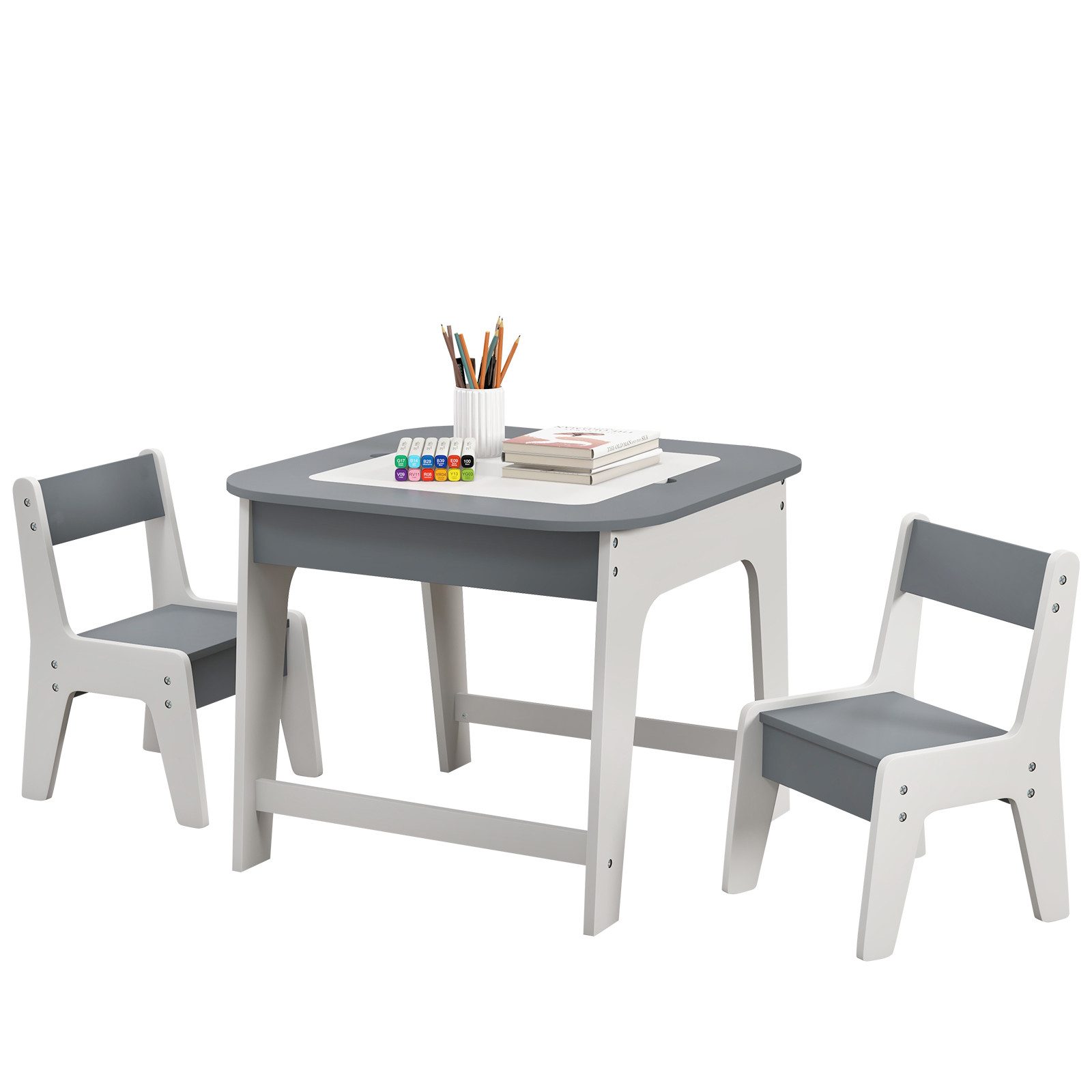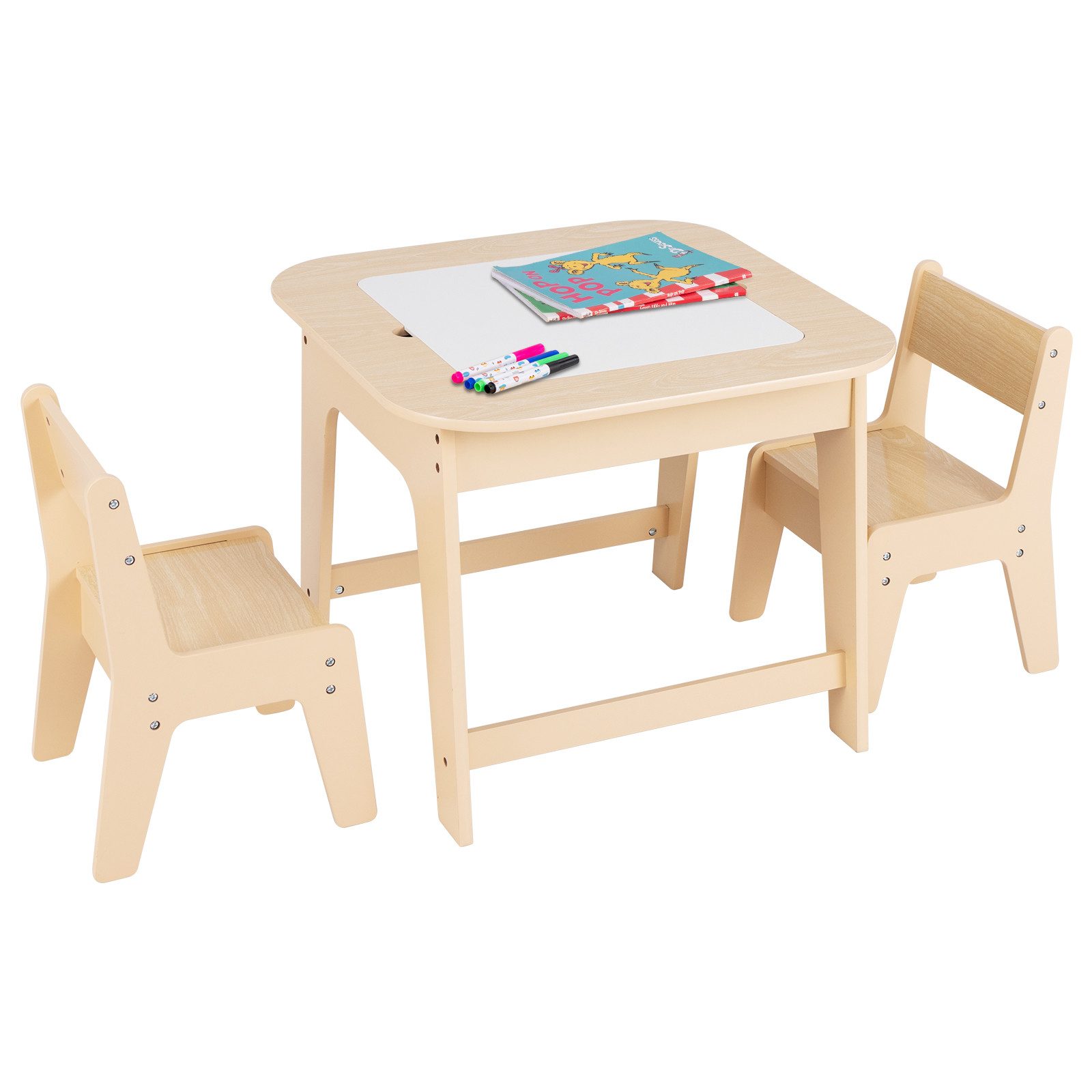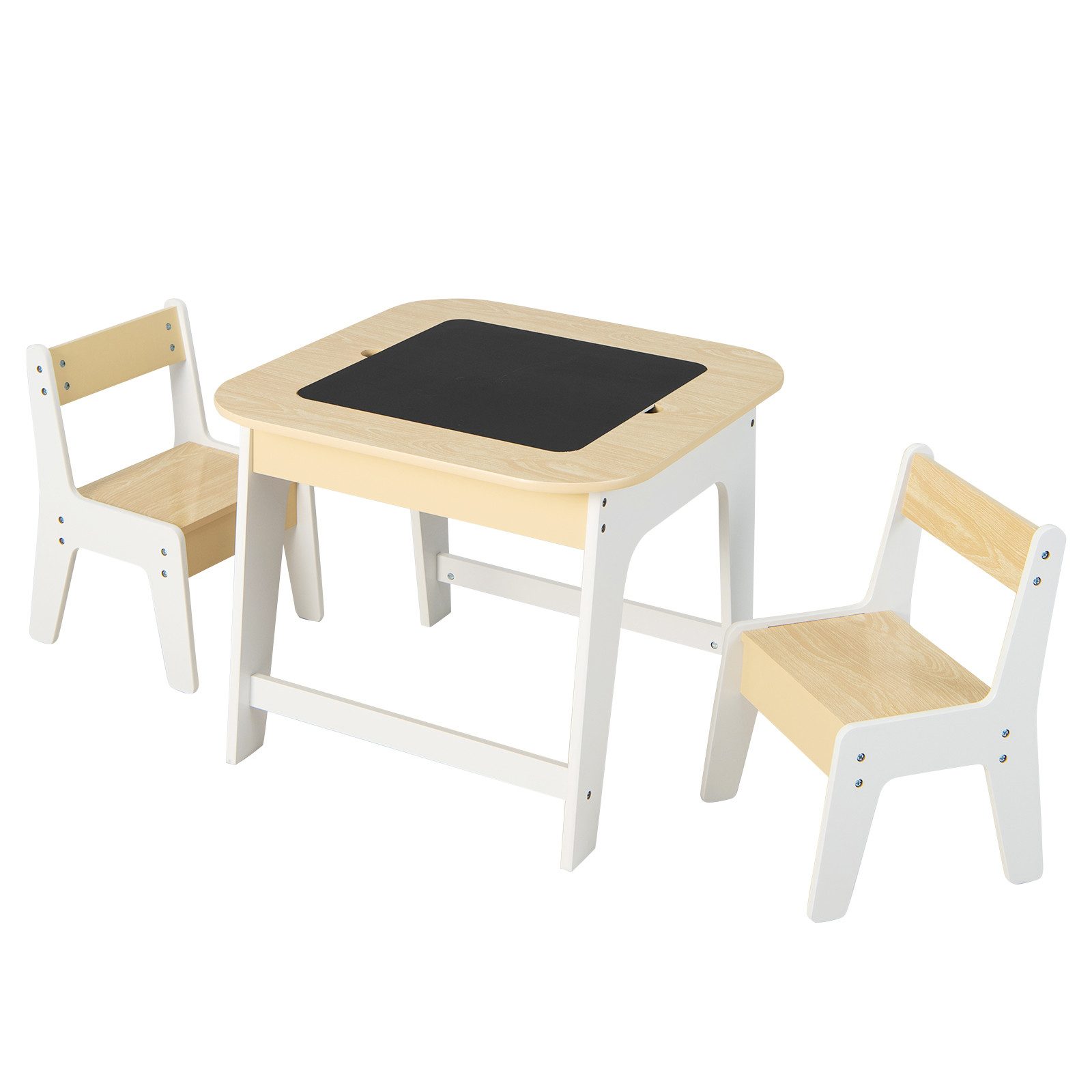Dieses Set aus Tisch und Stühlen bietet Kindern im Alter von 3 bis 6 Jahren einen wunderbaren Ort zum Lesen, Spielen, Lernen, Schreiben oder Essen. Die doppelseitige Tischplatte verfügt über ein Whiteboard und eine Tafel, damit Kinder mit ihren Freunden zeichnen können. Darüber hinaus hilft der versteckte Stauraum den Kindern dabei, eine gute Angewohnheit für das Сортировка zu entwickeln. Wenn Ihre Kleinkinder müde sind, können sie sich auf unseren ergonomischen Stühlen ausruhen. Nach Gebrauch können Sie diese Stühle unter den Tisch schieben. Die glatte, lackierte Oberfläche lässt sich leicht reinigen und spart so Zeit und Energie.