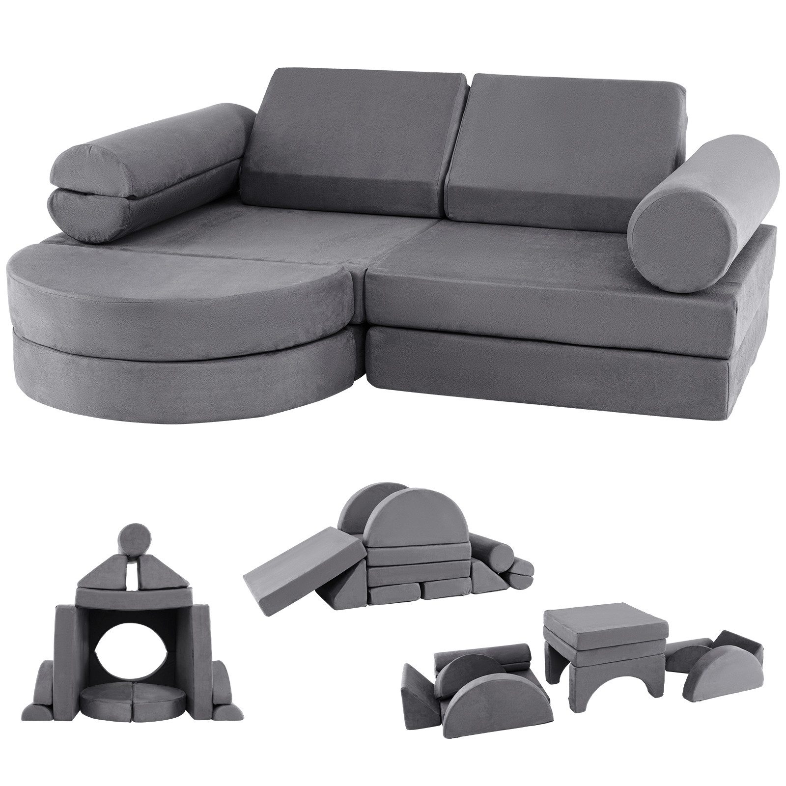 Mit unserem 13-teiligen modularen Spielsofa-Set können Sie Ihrem Kind endlosen Spaß und Kreativität bieten.