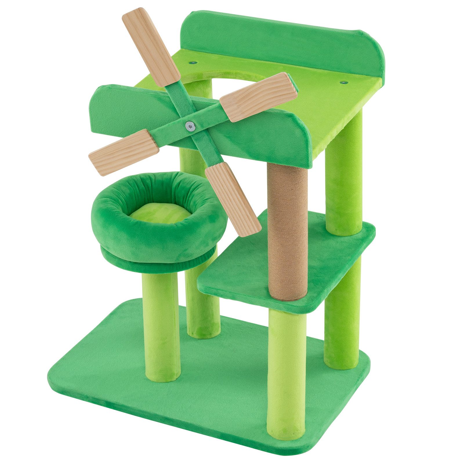 Unser hochwertiger Kratzbaum bietet Ihrem pelzigen Freund einen vielseitigen und stilvollen Rückzugsort. Mit mehreren Ebenen und gemütlichen Rückzugsorten entspricht er den natürlichen Instinkten Ihrer Katze zum Klettern, Kratzen und Entspannen. Die obere Plattform bietet eine ideale Aussichtsposition und die gepolsterte runde Plattform sorgt für zusätzlichen Komfort. Die drehbare Windmühle und die hochwertige Kratzsäule fördern das Spielen Ihrer Katze und schützen Ihre Möbel vor Beschädigungen. Das weiche Polsterkissen ist mit hochwertiger PP-Baumwolle gefüllt und mit hautfreundlichem Stoff überzogen, für eine sanfte Haptik. Die einfache Montage mit Anleitung und Absturzsicherungen gewährleisten ein sicheres Spielerlebnis.