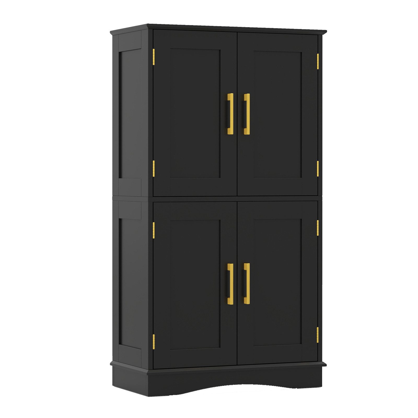 Verbessern Sie Ihre Hausaufbewahrungslösungen mit diesem vielseitigen Vorratsschrank. Mit 4 Türen und 2 verstellbaren Regalen bietet diese freistehende Aufbewahrungseinheit reichlich Platz für verschiedene Gegenstände. Das anspruchsvolle Design, einschließlich goldener Griffe und dekorativer Zierleisten, verleiht jedem Raum Eleganz. Geeignet für Küche, Badezimmer, Wohnzimmer oder Eingangsbereich bringt dieser Bodenschrank sowohl Funktionalität als auch Stil in Ihren Raum.