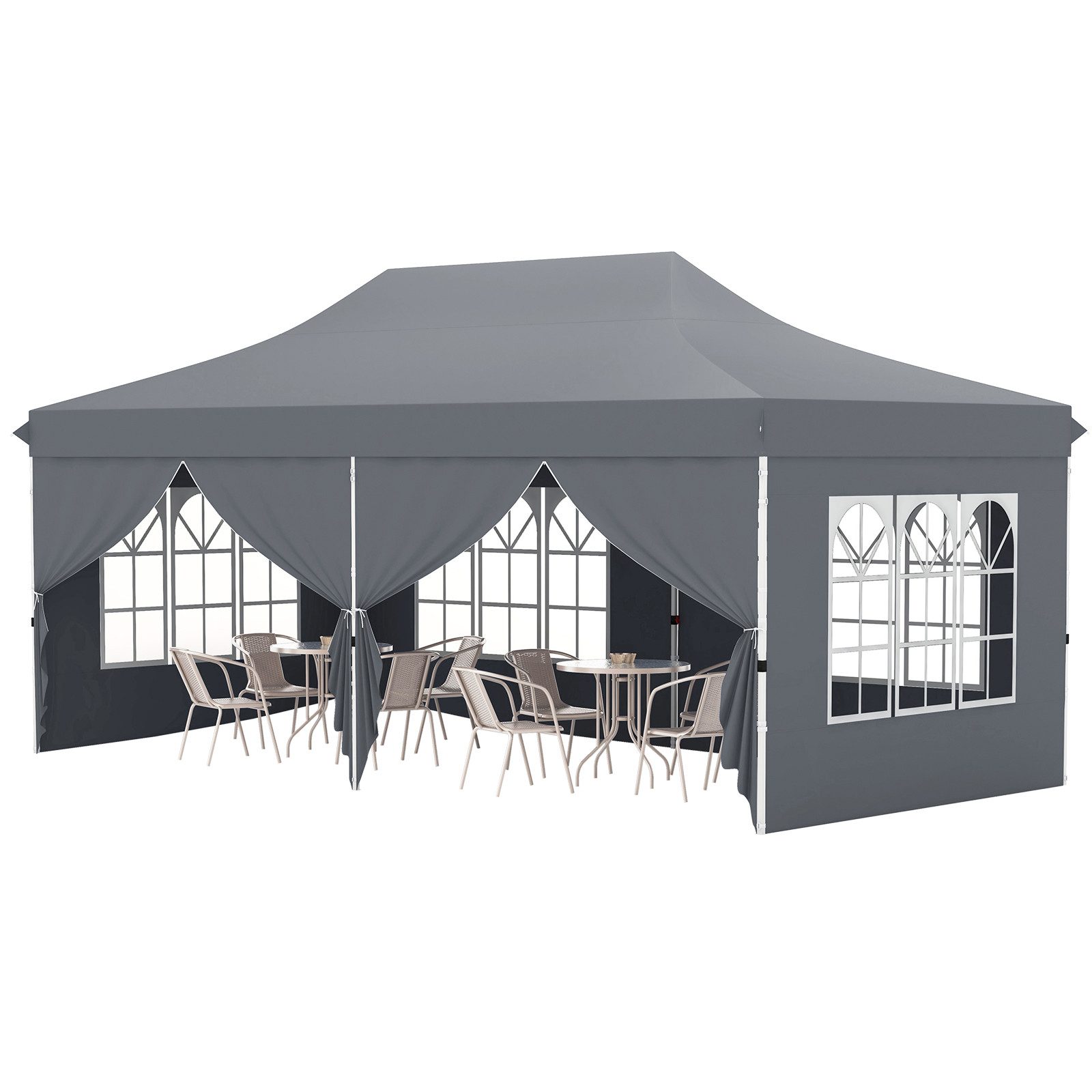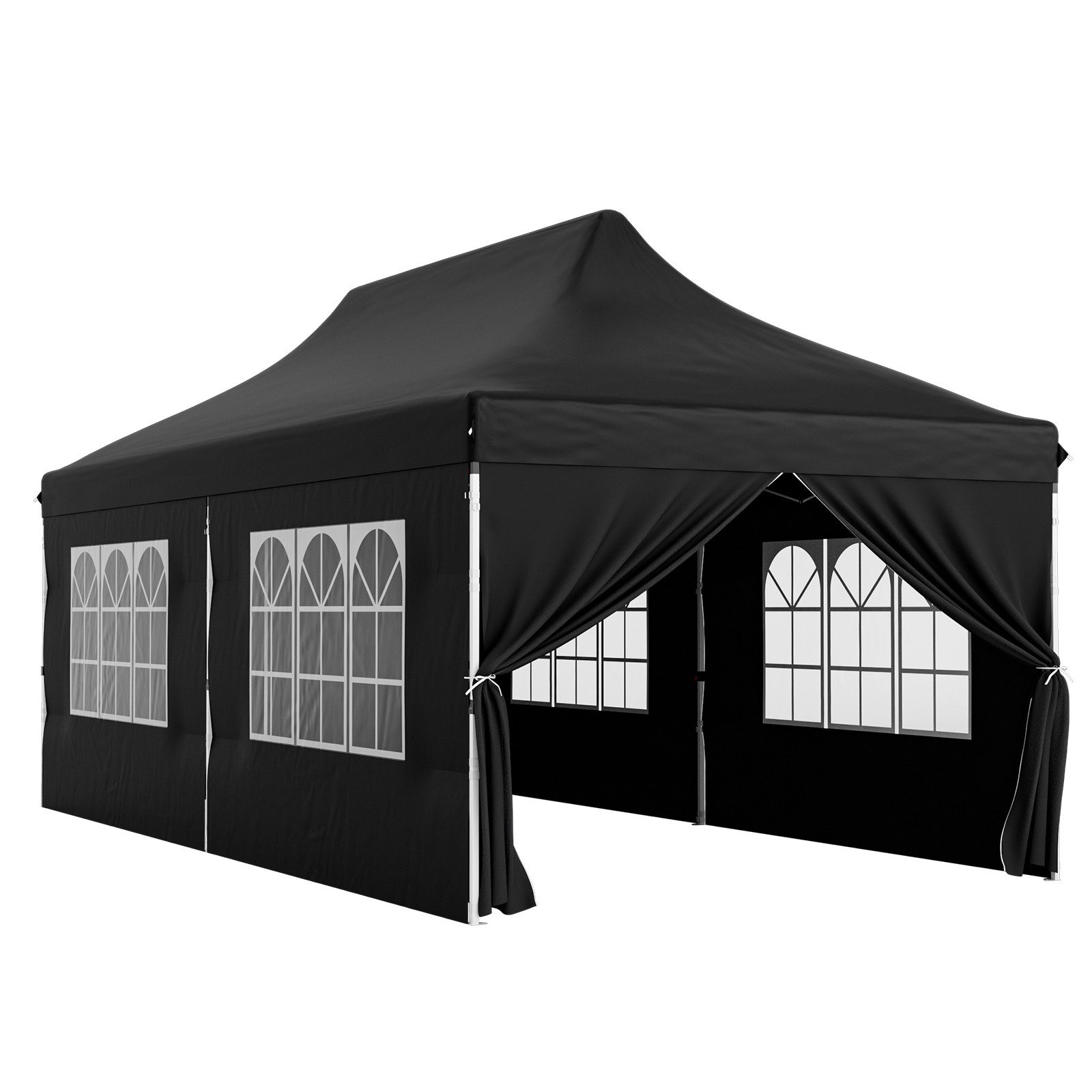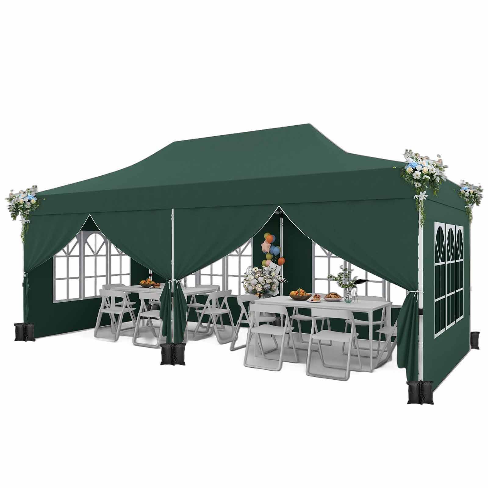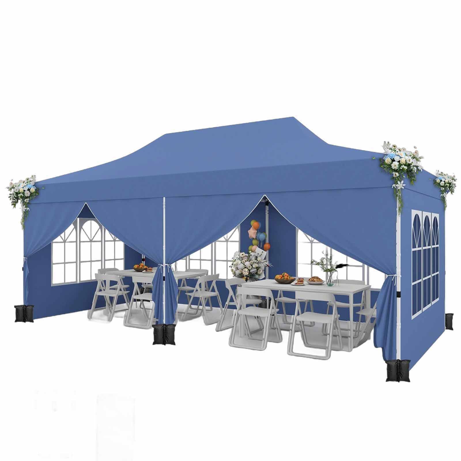 Unser großer Pavillon hat die Maße 300 x 600 x 296-316 cm (L x B x H) und bietet einen großen schattigen Platz im Freien für Picknicks, Grillpartys, Feste, Hochzeiten, Camping, gewerbliche Nutzung und mehr. Es gibt 6 abnehmbare Seitenwände und 2 davon verfügen über Eingänge mit Reißverschluss, die einen schnellen Zugriff ermöglichen und bei Bedarf zusätzliche Privatsphäre bieten. Darüber hinaus wird das Zelt von einem robusten, pulverbeschichteten Metallrahmen und einem strapazierfähigen Oxford-Stoffdach getragen, was seine Haltbarkeit bei allen Wetterbedingungen gewährleistet. Und der Schirmstoff mit Silberbeschichtung bietet hervorragenden Sonnenschutz. Außerdem bieten wir 12 Erdspieße aus Metall und 6 Windseile an, mit denen Sie das Eventzelt fest am Boden befestigen und so für mehr Stabilität und Sicherheit sorgen können.
