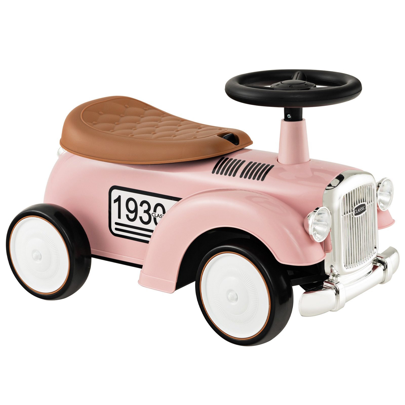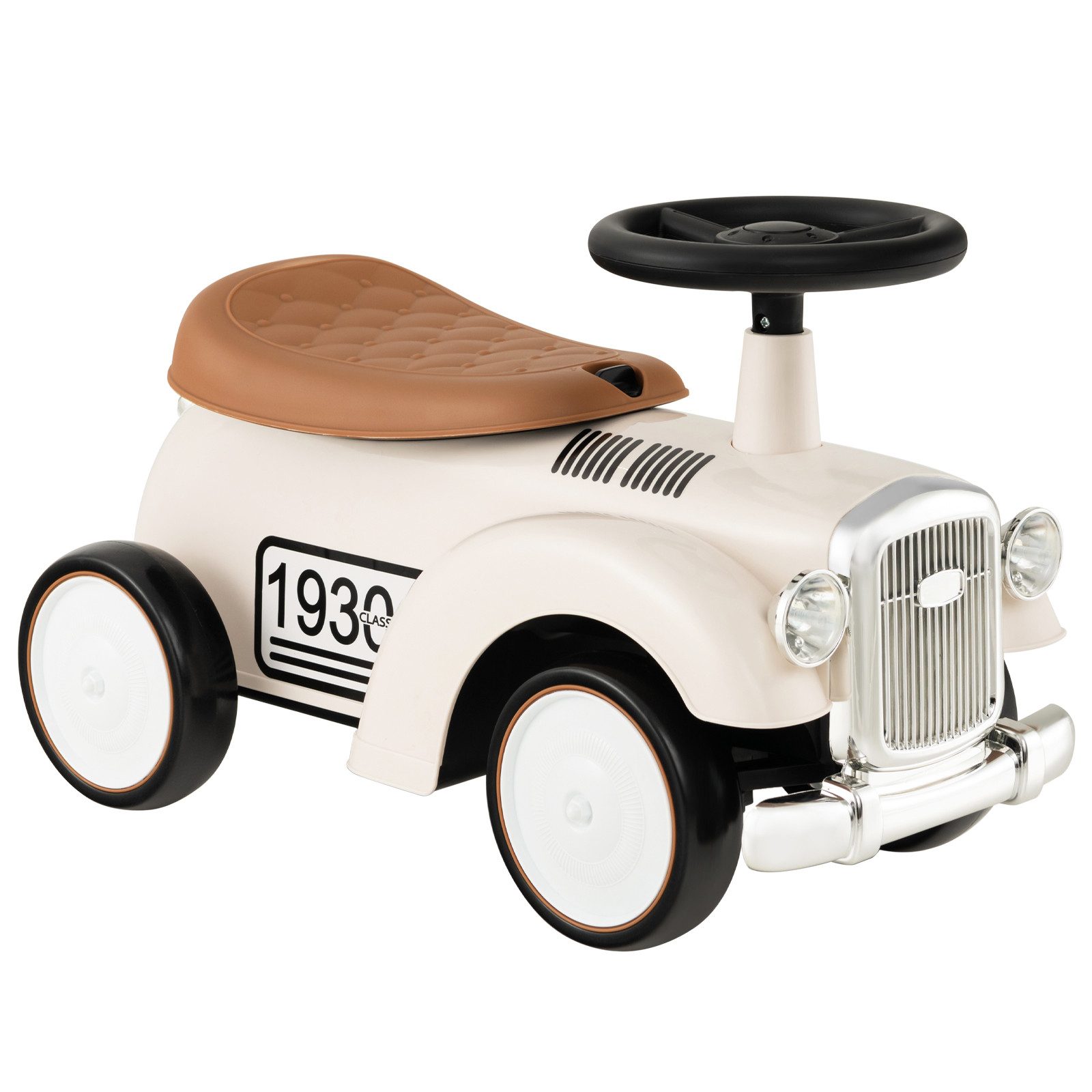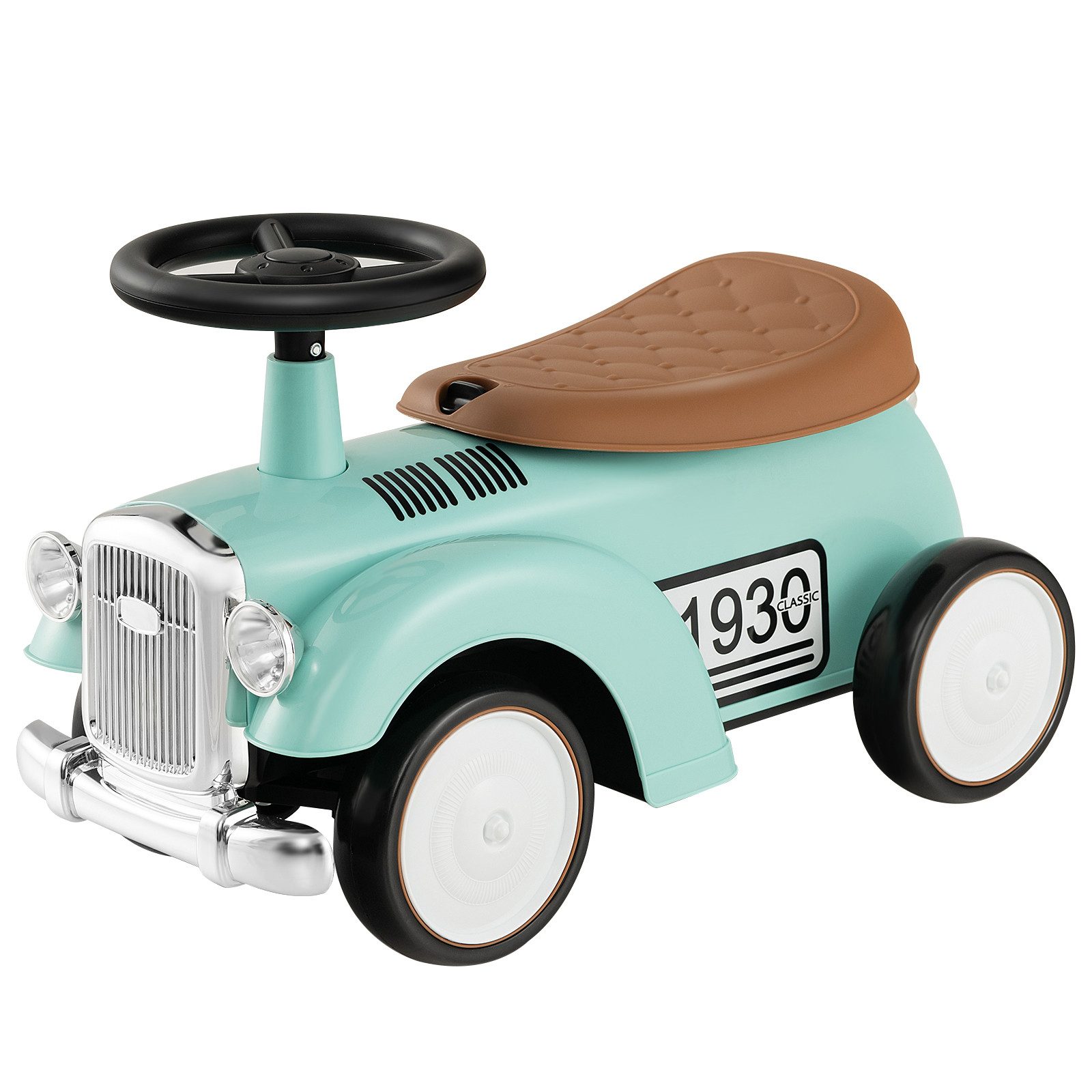Mit einem funktionierenden Lenkrad können Kleinkinder problemlos nach links oder rechts abbiegen. Und die auf 40° begrenzte Lenkung sorgt dafür, dass Kinder beim Fahren nicht seitlich herunterstürzen. Durch Drehen des Knaufs lässt sich der Sitz abnehmen und es entsteht praktischer Stauraum für Kinderutensilien. Noch wichtiger ist, dass sich die großen und leichtgängigen Räder gut an verschiedene Straßen anpassen. All das ist für Kinder eine gute Möglichkeit, ihre motorischen Fähigkeiten zu entwickeln und das Gleichgewicht zu fördern. Andererseits macht das Retro-Erscheinungsbild mit Aufklebern dieses Fahrzeug für Kinder attraktiver.