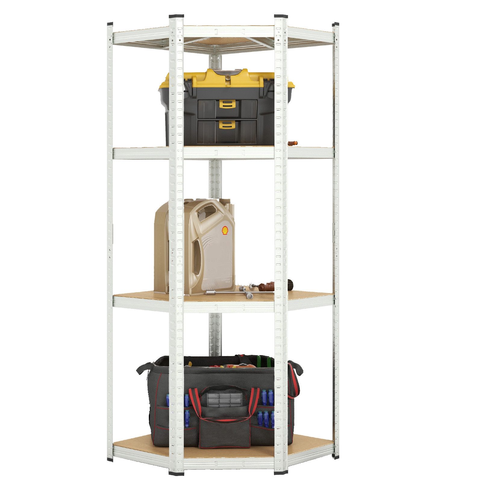 Unser 100 cm breites, 80 cm tiefes und 180 cm hohes Aufbewahrungsregal wurde genial entworfen, um in einer Ecke platziert zu werden, wodurch Ihr Platz maximiert wird, ohne Eindringlinge zu verursachen. Darüber hinaus bieten die 4 offenen Regale vertikalen Stauraum und können jeweils bis zu 180 kg tragen und bieten somit einen soliden Halt. Все sind verstellbar, um verschiedene Gegenstände aufzunehmen. Die 2 enthaltenen Kippsicherungen sorgen für Stabilität und eliminieren so die Gefahr des Umkippens. Die Anti-Rutsch-Pads greifen den Boden, sichern Ihre Einheit und Ihre Artikel an Ort und Stelle und schützen Ihre Böden vor Beschädigungen.