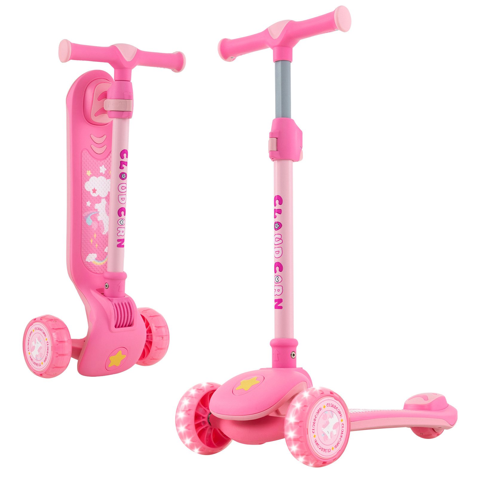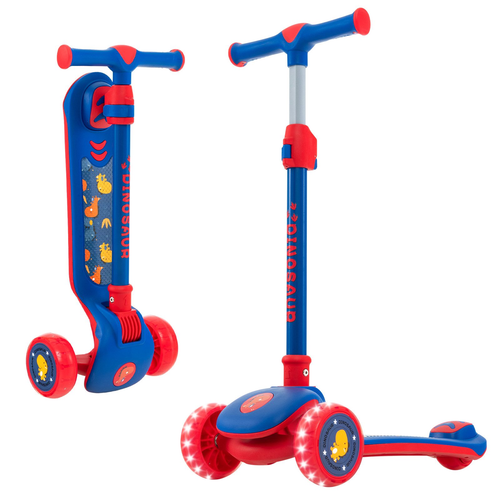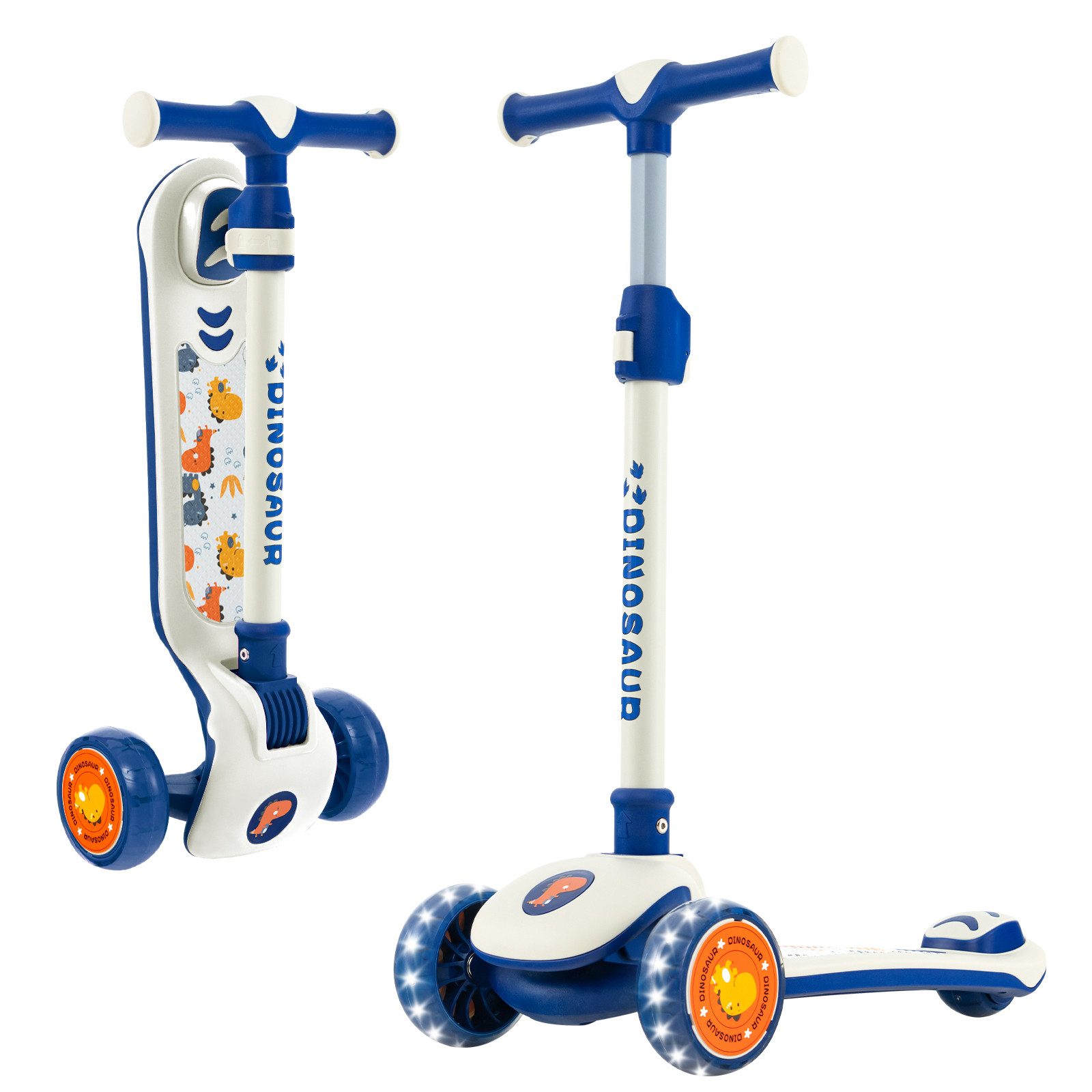 Beschreibung: Bringen Sie Ihre Kinder mit unserem klappbaren Tretroller in Schwung! Dieser klappbare Tretroller verfügt über einen bequemen, stufenlos verstellbaren Lenker und begleitet Ihr Kind beim Heranwachsen. Darüber hinaus sorgen die LED-beleuchteten Räder für Fahrspaß auf verschiedenen Straßen. Und das breite Deck verfügt für eine sichere Nutzung über eine Hinterradbremse. Mit einem Lean-to-Steer-System können Kleinkinder je nach Körperneigung nach links oder rechts abbiegen. Daher ist der 3-Rad-Roller ein schönes Geschenk, das Kindern hilft, ihr Gleichgewicht und ihre Koordination zu verbessern. Die lebendigen Farben und kreativen Muster sind attraktiv für energiegeladene Jungen und Mädchen. Darüber hinaus erleichtert das klappbare und leichte Design den Transport und die Lagerung. Dieser Tretroller wird vollständig zusammengebaut geliefert und bietet Kindern sofort eine wunderbare Reise.