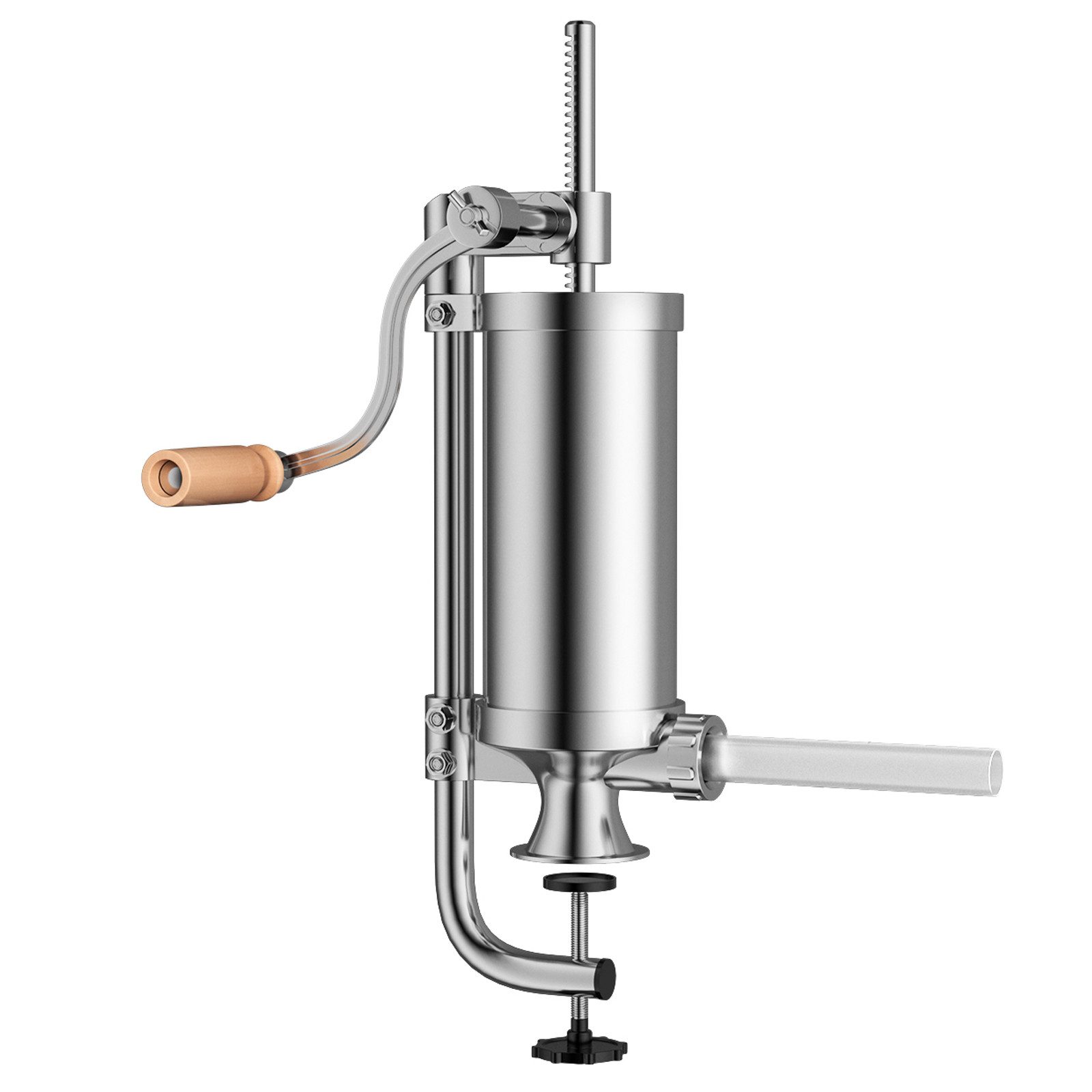 Unsere Wurstmaschine mit stromlinienförmiger Design, die für die Herstellung von Wurst, Hot Dogs, Kielbasa und viele mehr geeignet! Das Gerät besteht aus stabilem Aluminium und kann mit Hilfe der Schraubzwingenbefestigung fest am Tisch verankert werden, so dass ein rutschfestes und angenehmes Arbeiten gewährleistet ist. 4 unterschiedliche Tuben ermöglichen eine individuelle Wurstdicke. Durch die großzügige Füllmenge von 1,5L können Sie zügig arbeiten, ohne ständig nachfüllen zu müssen.