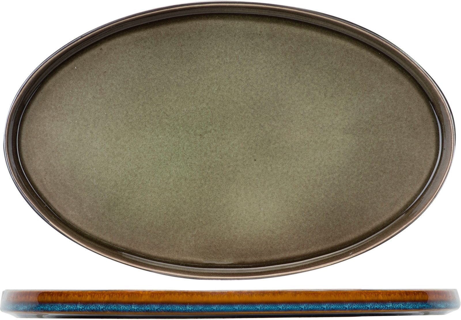Auf dem ovalen grünen Teller lassen sich Vorspeisen und Beilagen oder auch für kalte Platten und Appetithäppchen stilvoll anrichten und servieren.